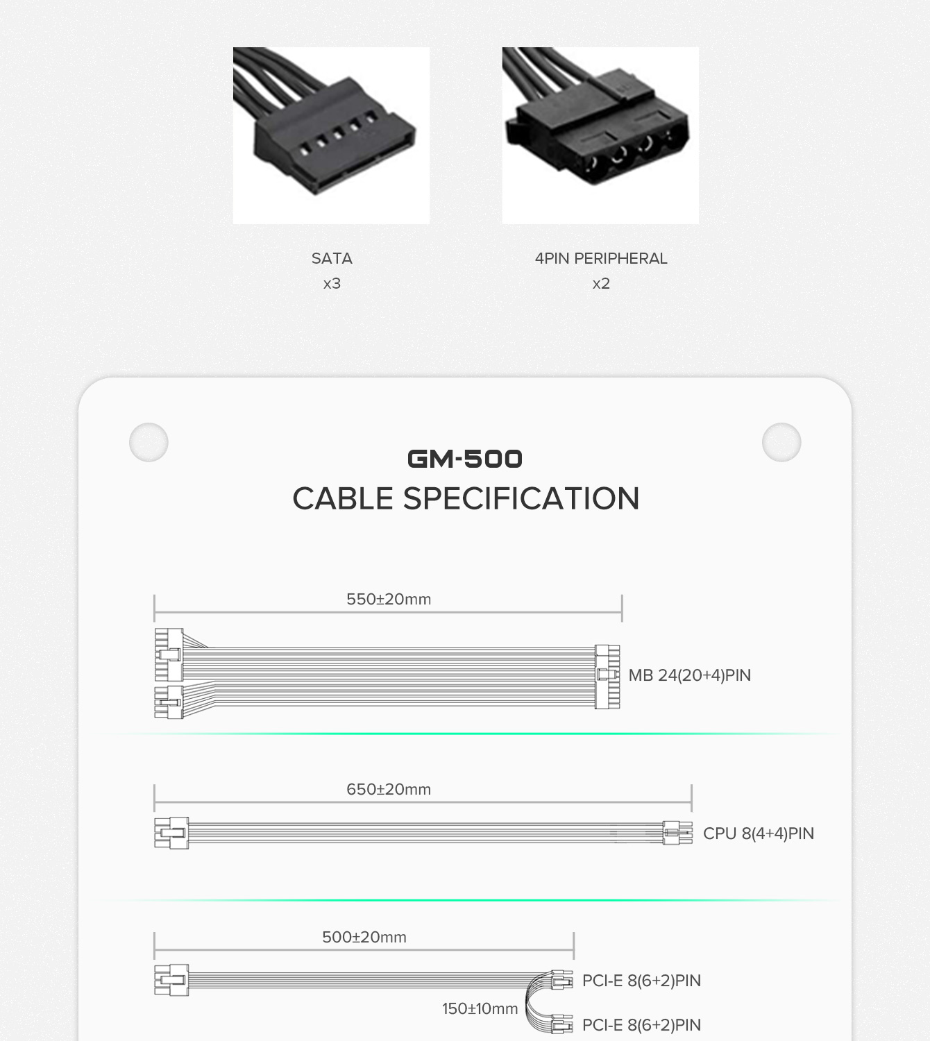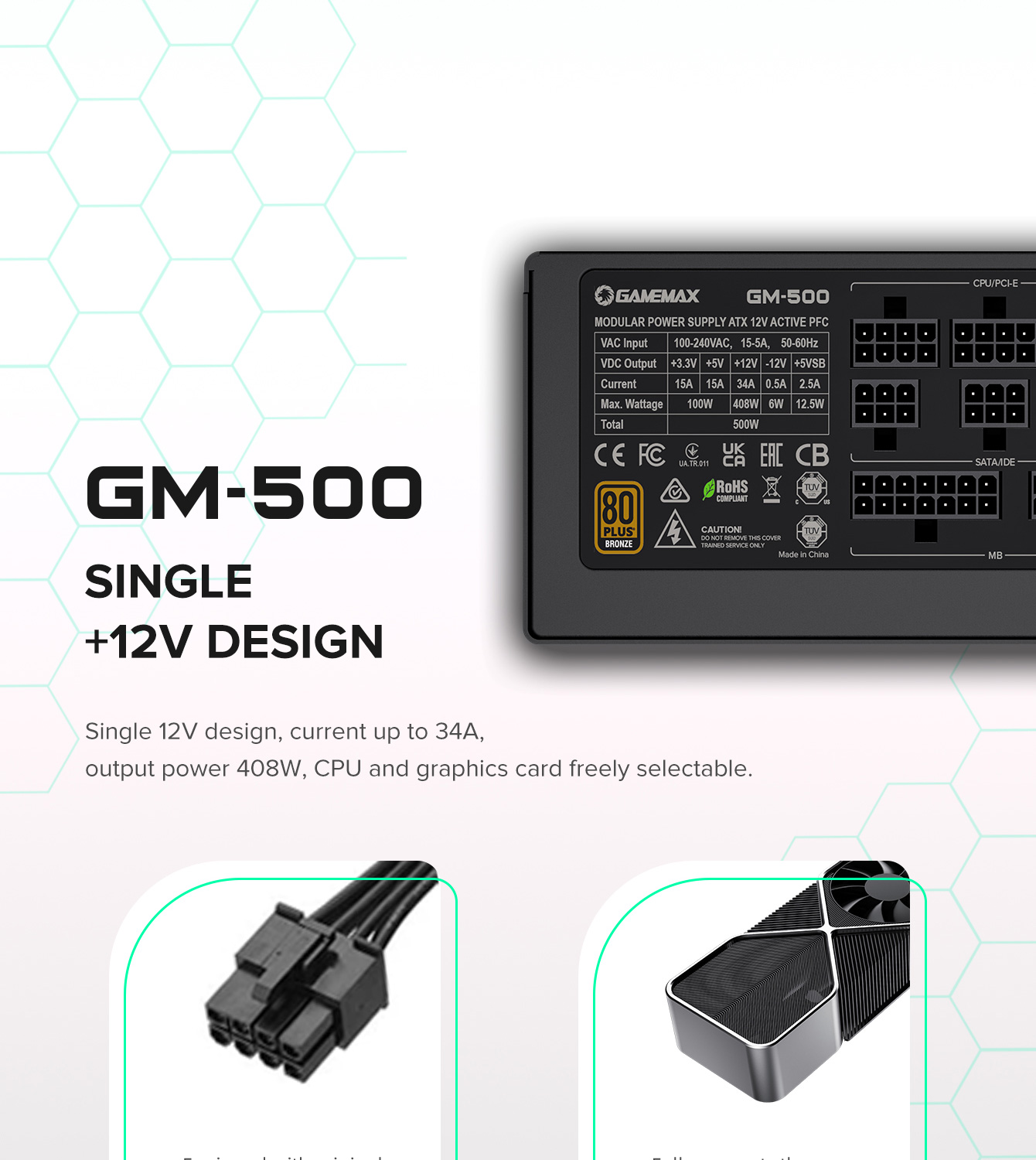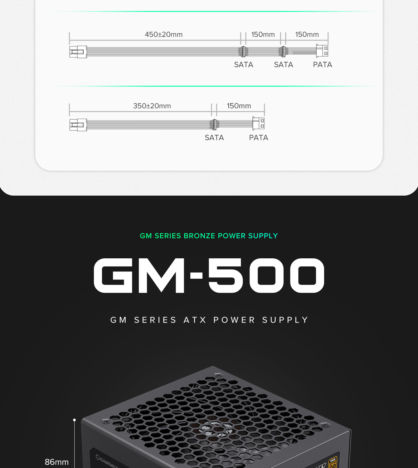 Блок питания GameMax GM500 для ПК мощностью 500 Вт, с полностью модульными кабелями, позволяющими подключать только те кабели, которые необходимы вашей системе.