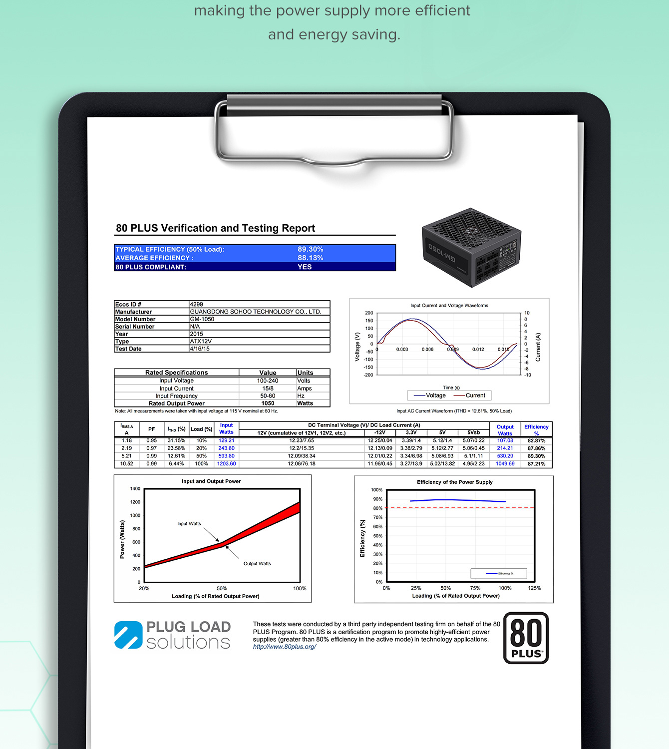 • Эффективность до 85% с официальной сертификацией 80PLUS
