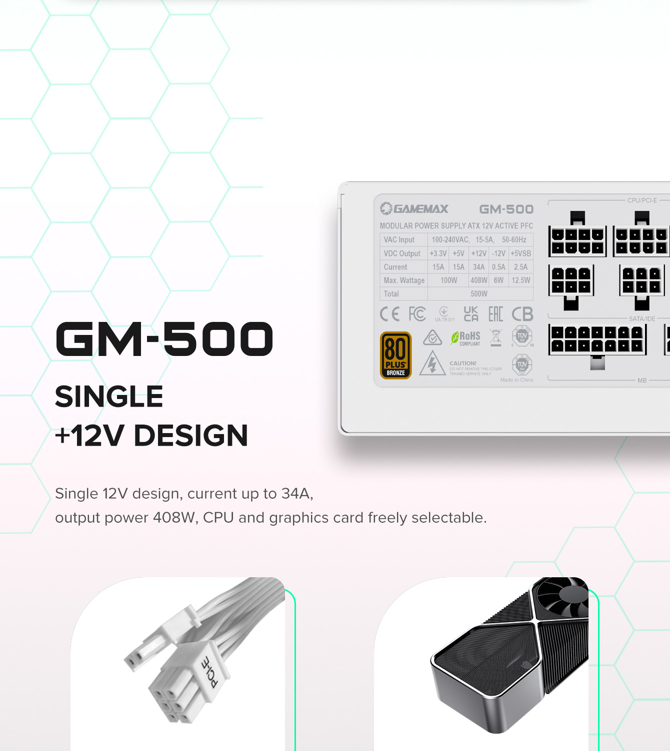 Блок питания GameMax GM500 для ПК мощностью 500 Вт, с полностью модульными кабелями, позволяющими подключать только те кабели, которые необходимы вашей системе.