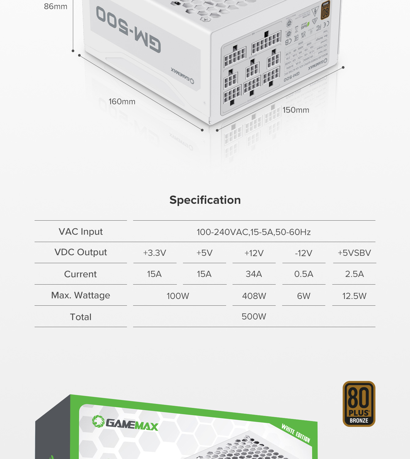 | 80 Plus Certified: | Yes - 80 Plus Bronze |
