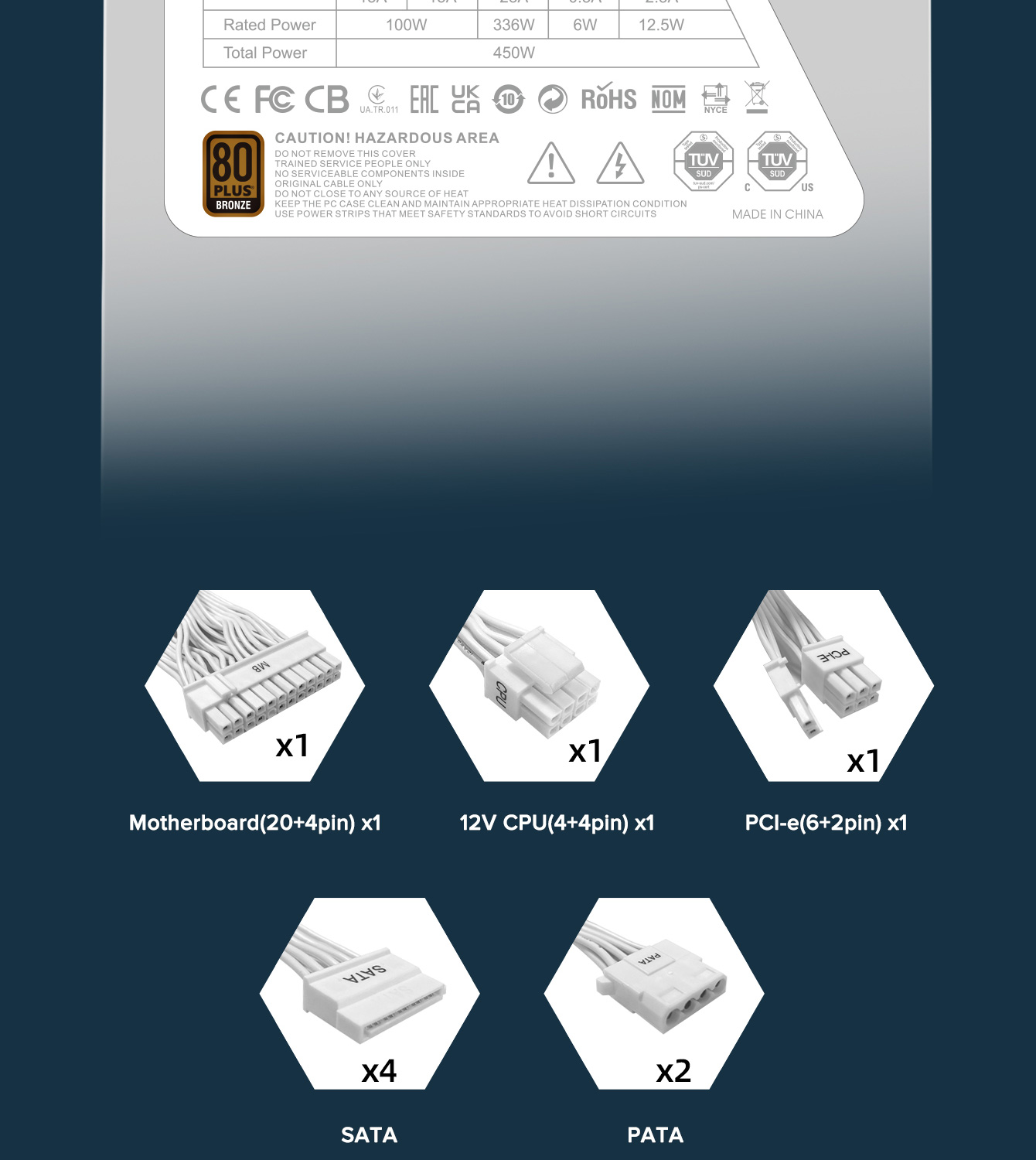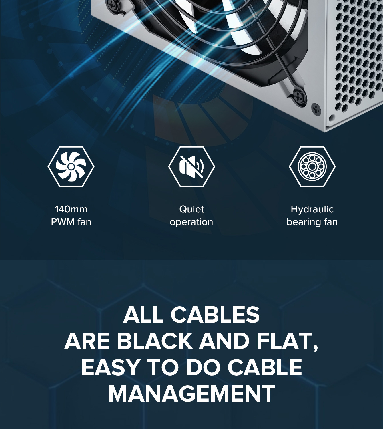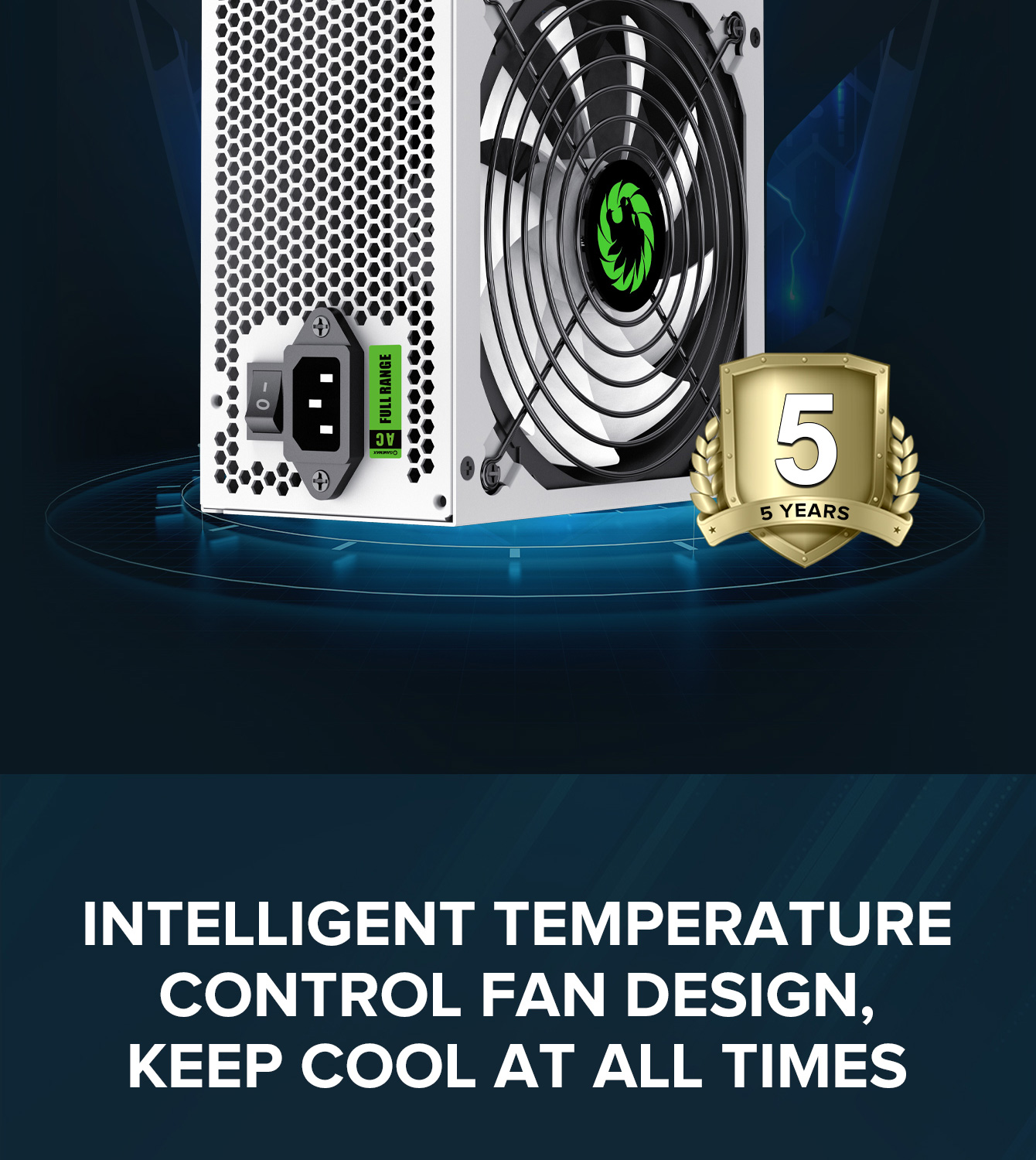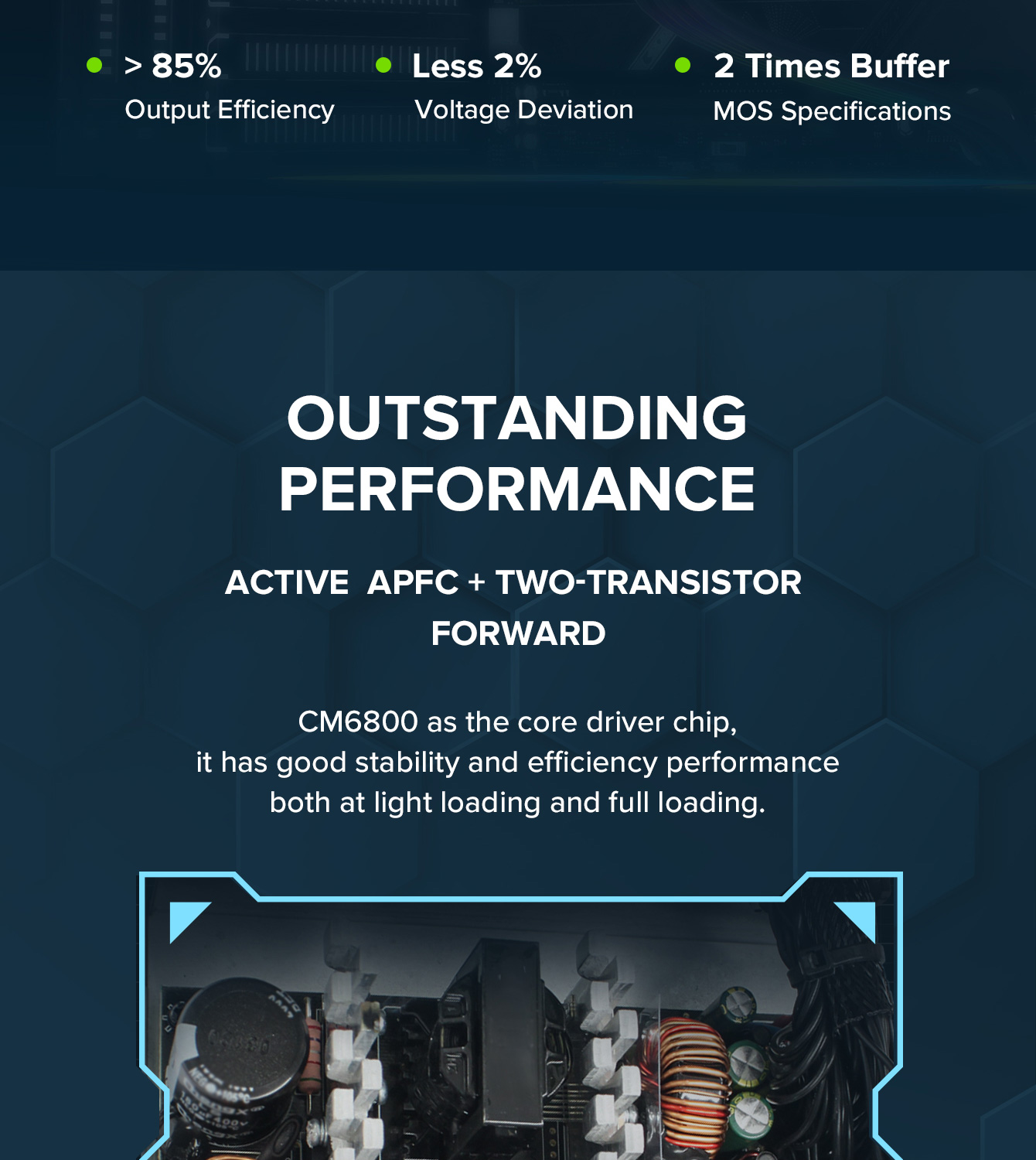 • Up to 82%+ efficiency with official 80Plus certificate,Maximum efficiency 85%