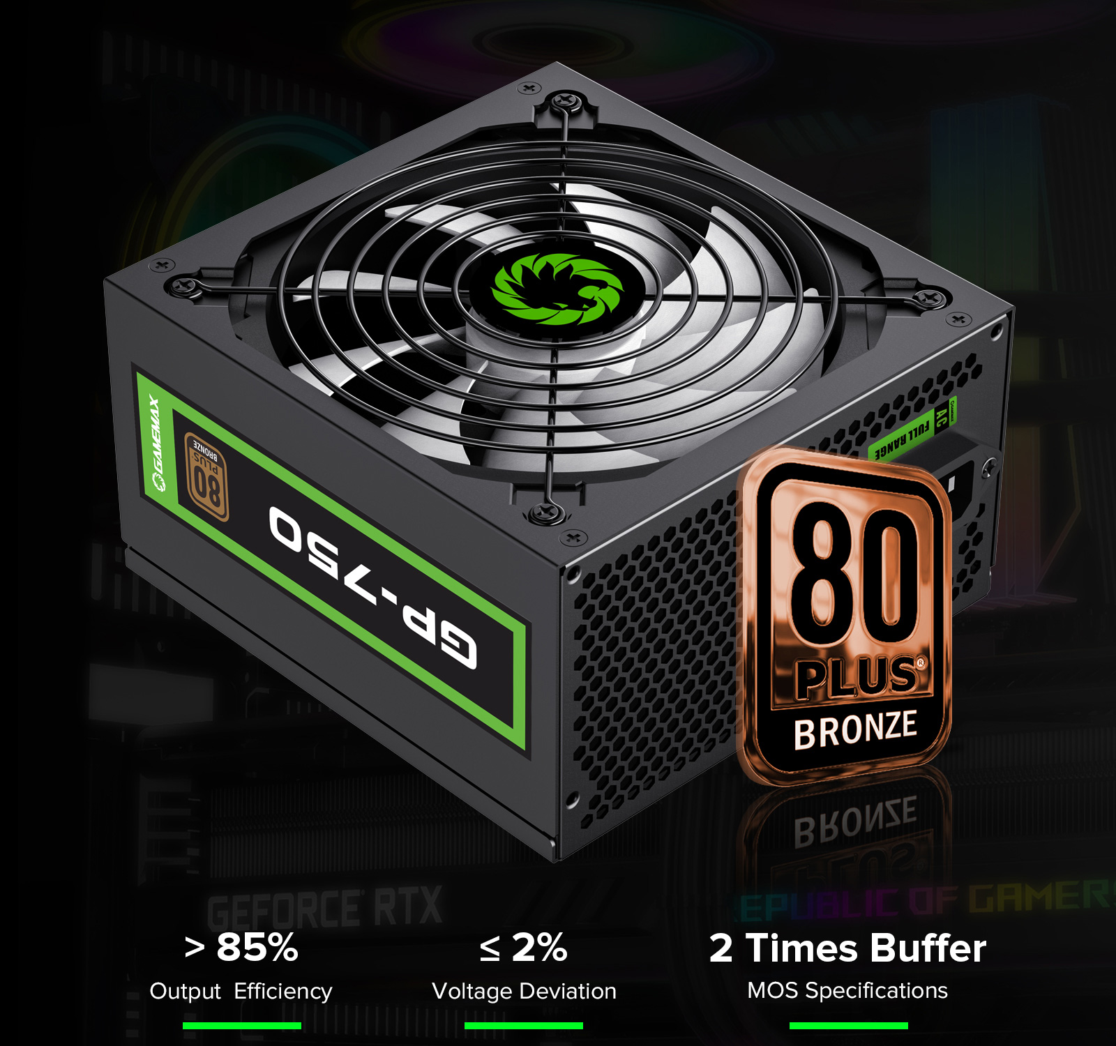GameMax GP-750: Блок питания мощностью 750 Вт с сертификацией 80 Plus Bronze,это высокопроизводительный блок питания для пк, который обеспечивает надежную работу как для бизнес-систем, так и для игровых сборок. Испытайте истинное удовольствие от игр с мощным GP-750!