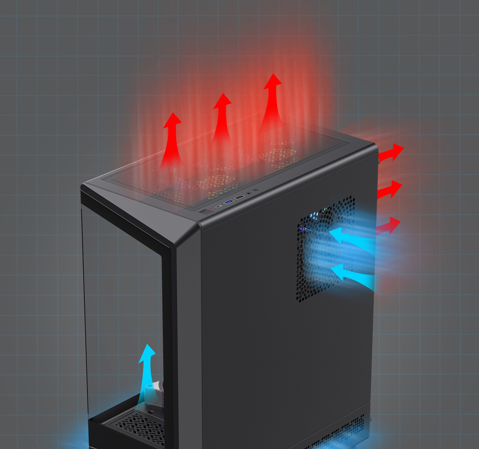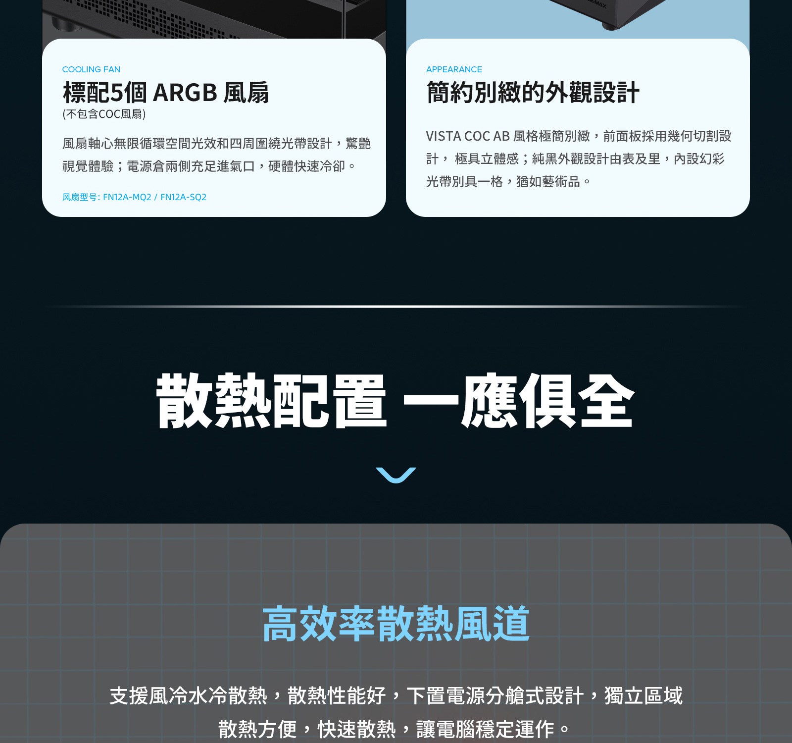 • 5 顆 ARGB 風扇:無限循環燈效,營造沉浸式視覺體驗
