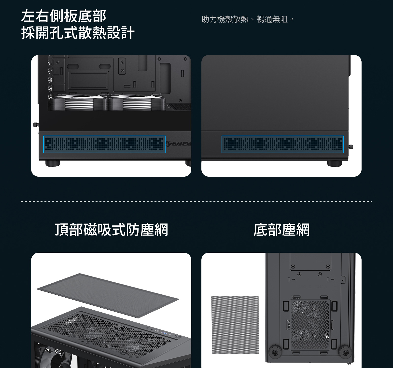 | 防塵設計 | 底部、前面板及頂板配備防塵網 | |