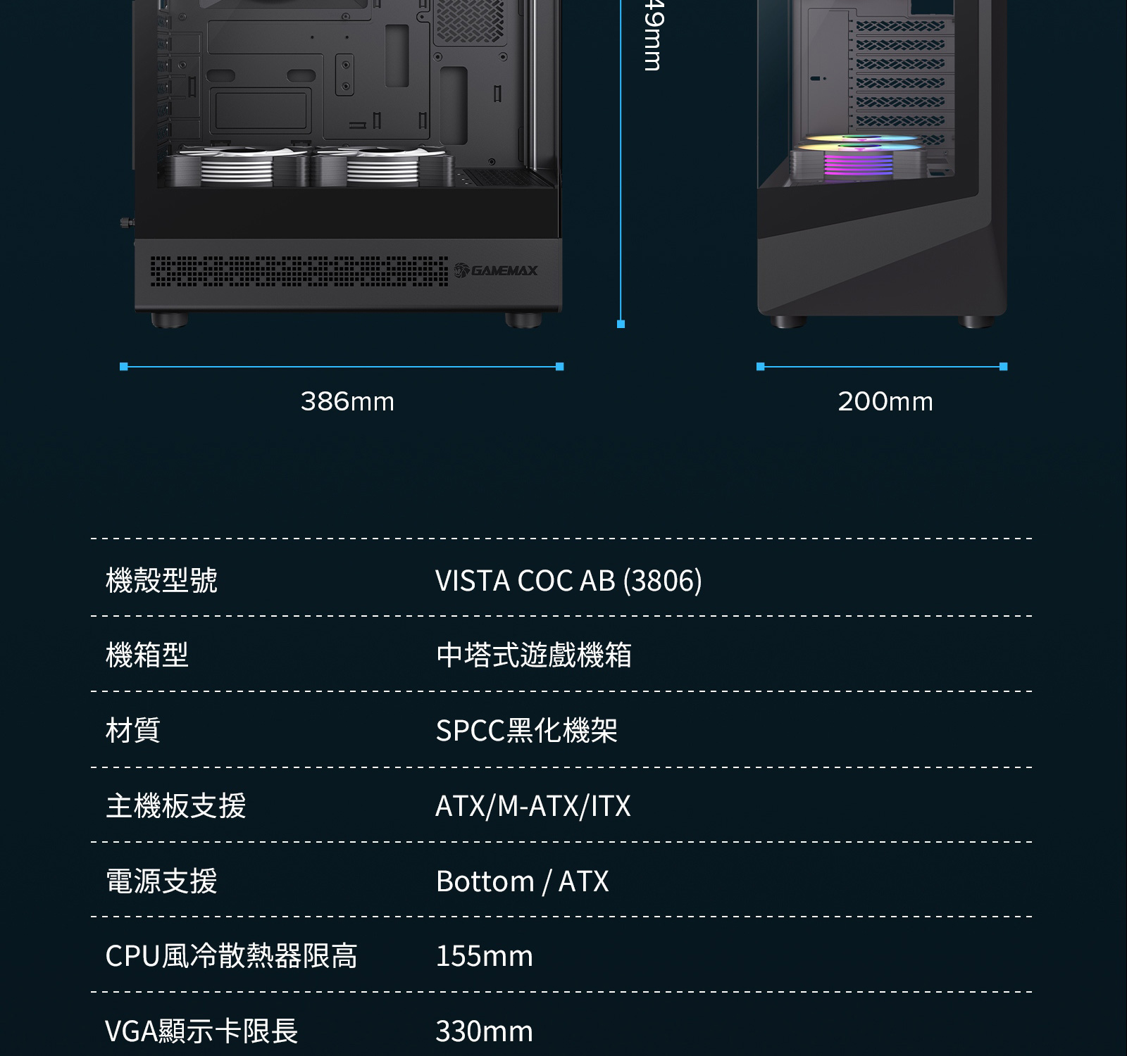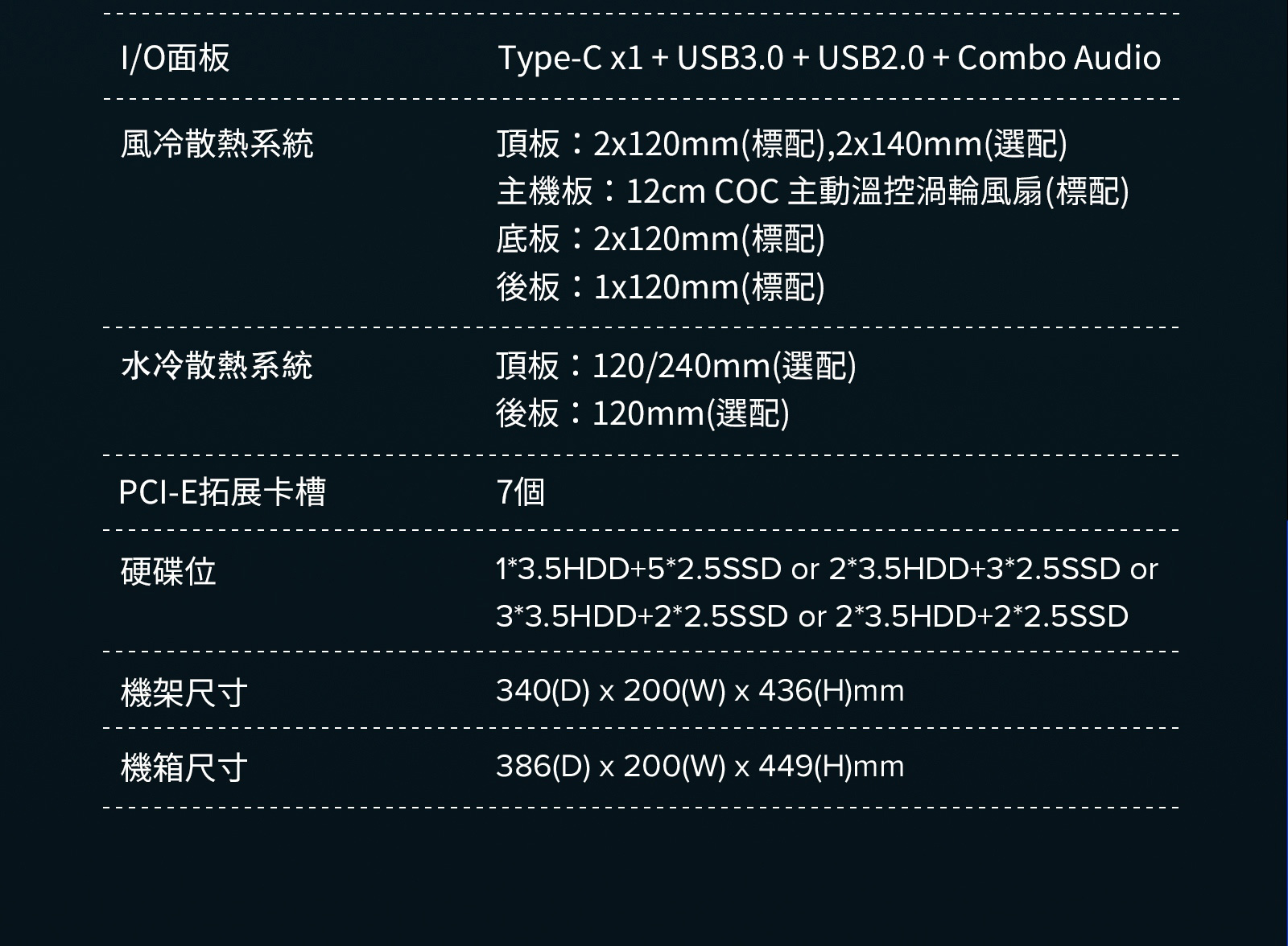 | 尺寸規格 | 機箱本體 | (長)340×(寬)200×(高)436mm |