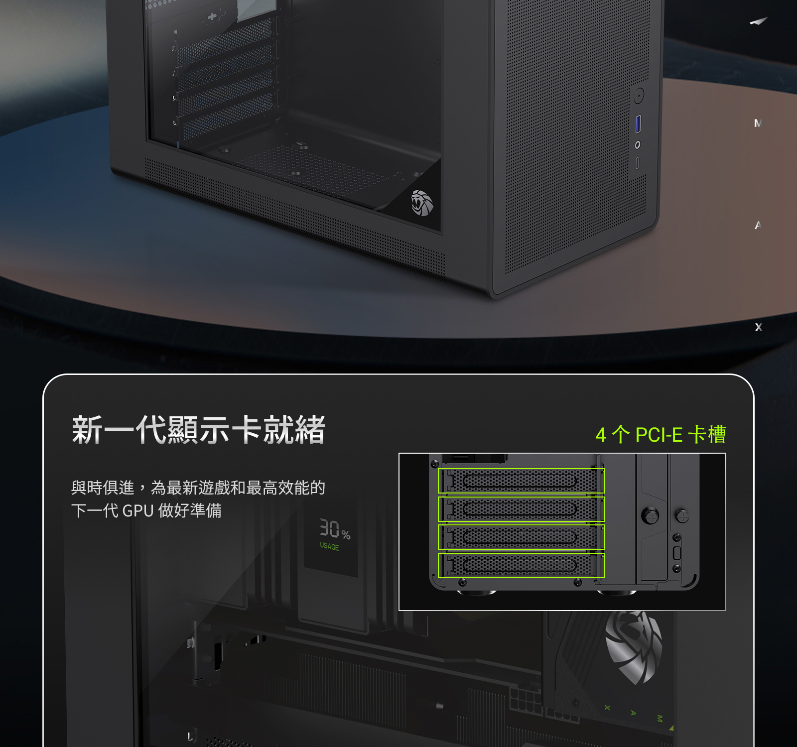 • 次世代顯卡相容-可容納長達 350mm 的顯卡,包括最新 50 系列及其他高階顯卡