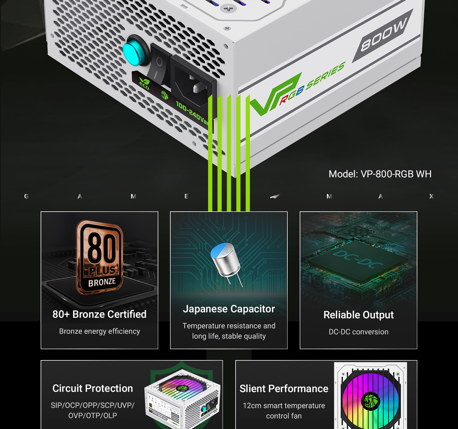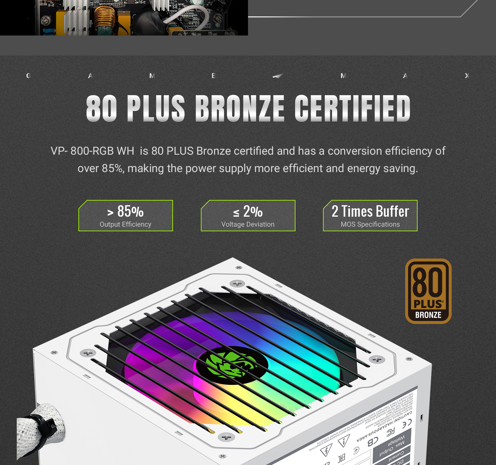 GameMax VP RGB Range has great features that make it a good choice for people who are looking for an efficient and reliable, good-value power supply