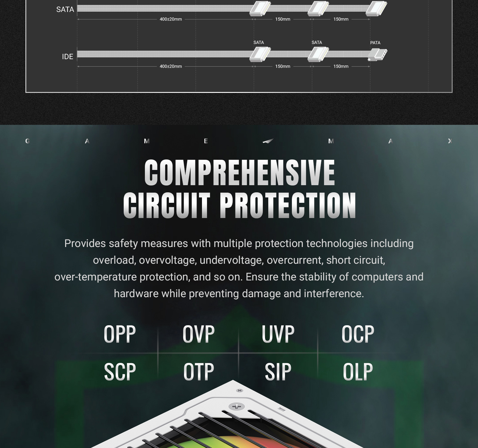 Comes with a PCIE(6+2) connector to support the latest GPUs, including RTX™ 40 series, ensuring smooth and reliable power delivery for your next build.