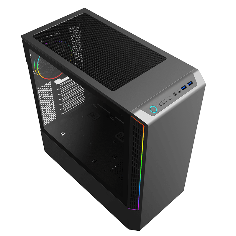 • The Panda T802 compact mid-tower case features a unique one-pcs screw easy open glass side window, and along with top and bottom ARGB strips.
