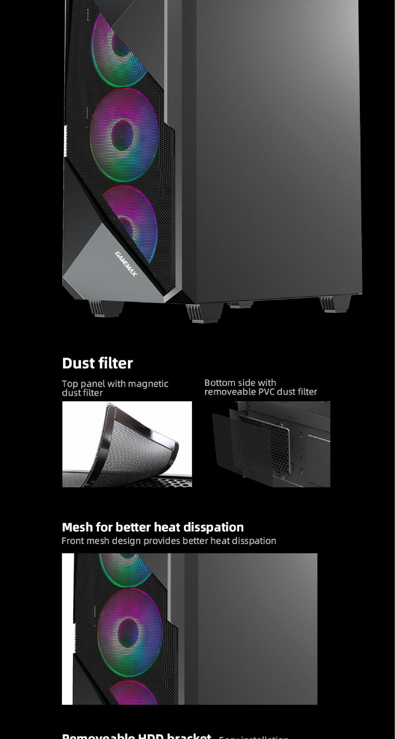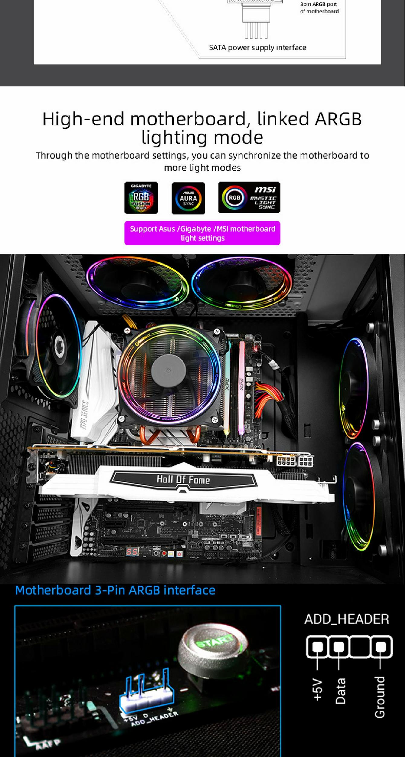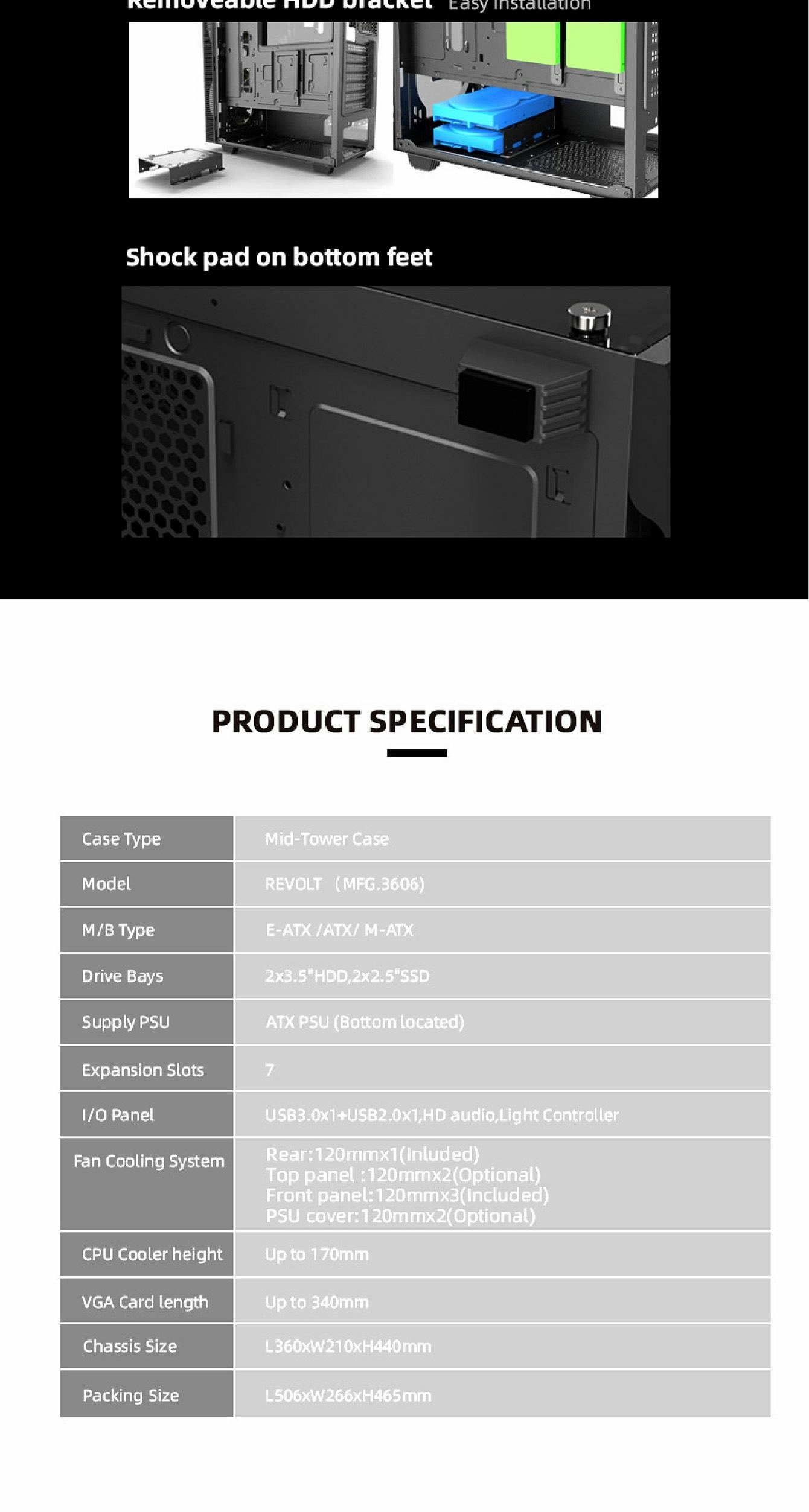 • The Revolt comes with a PWM and Rainbow ARGB hub with a 3pin ARGB header ,it can be over 100 light mode also it is support to connect directly to your motherboard by optional Aura SYNC cable, allowing you to control your fans and LED strip via mobo provided software.