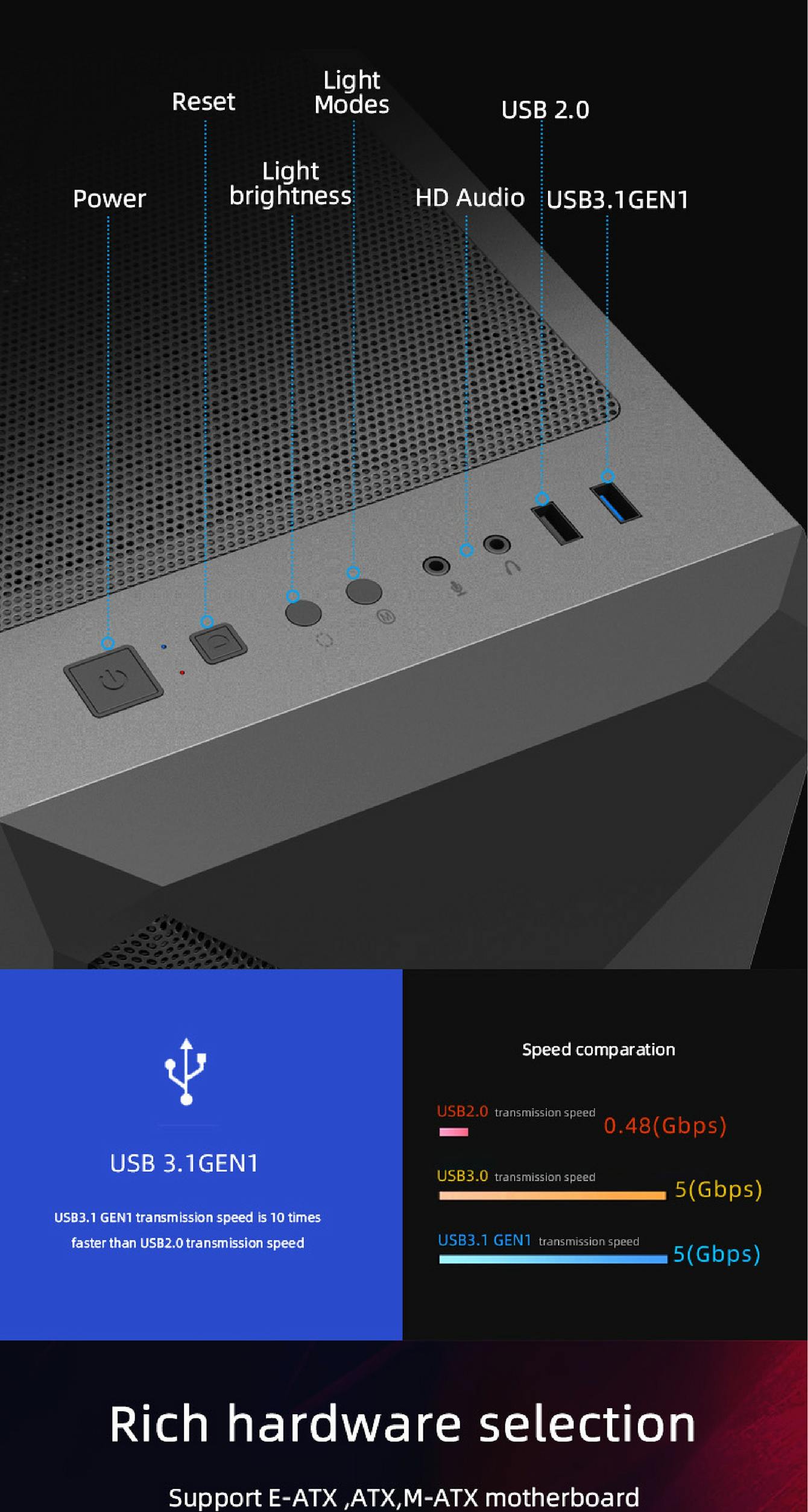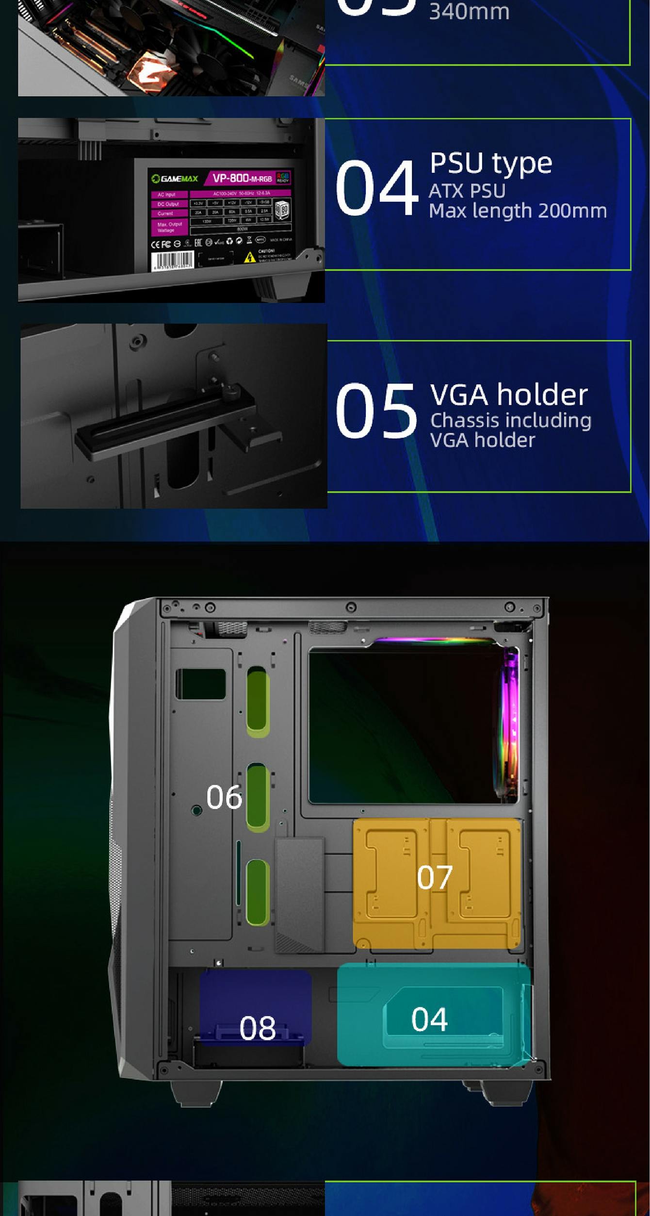 | M/B Form Factor | ATX、M-ATX、E-ATX (no Fan on front) | |