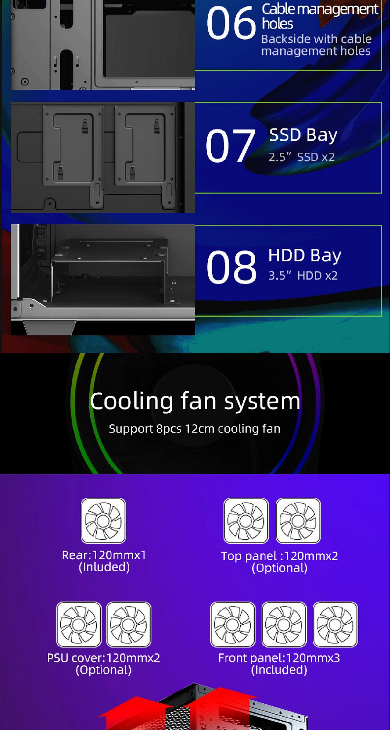 | Cooling Fan Support | Front | 3 x 120mm ARGB FN-12N-Rainbow-T Fan(Included) |