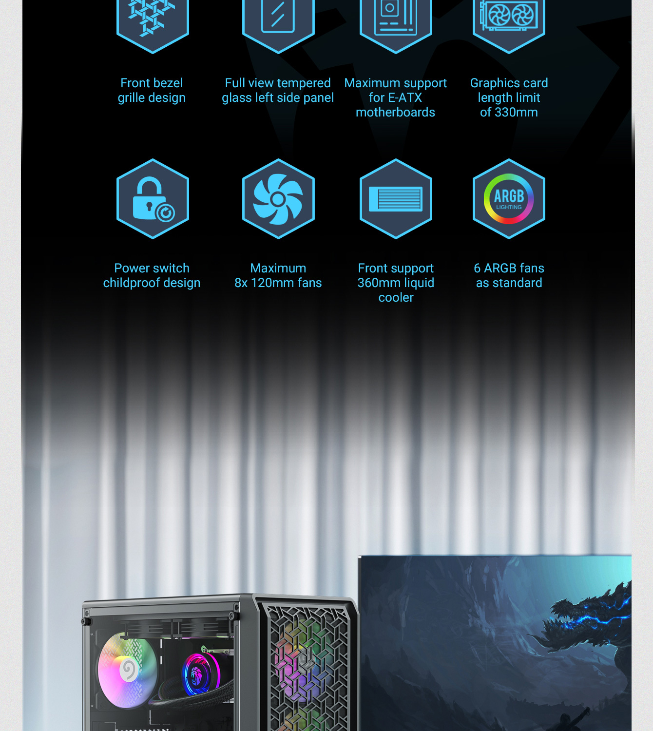 • Unique Airflow & Cooling: Forge AB Premium features a unique airflow design with 6 ARGB fans and 360mm radiator support for optimal cooling.
