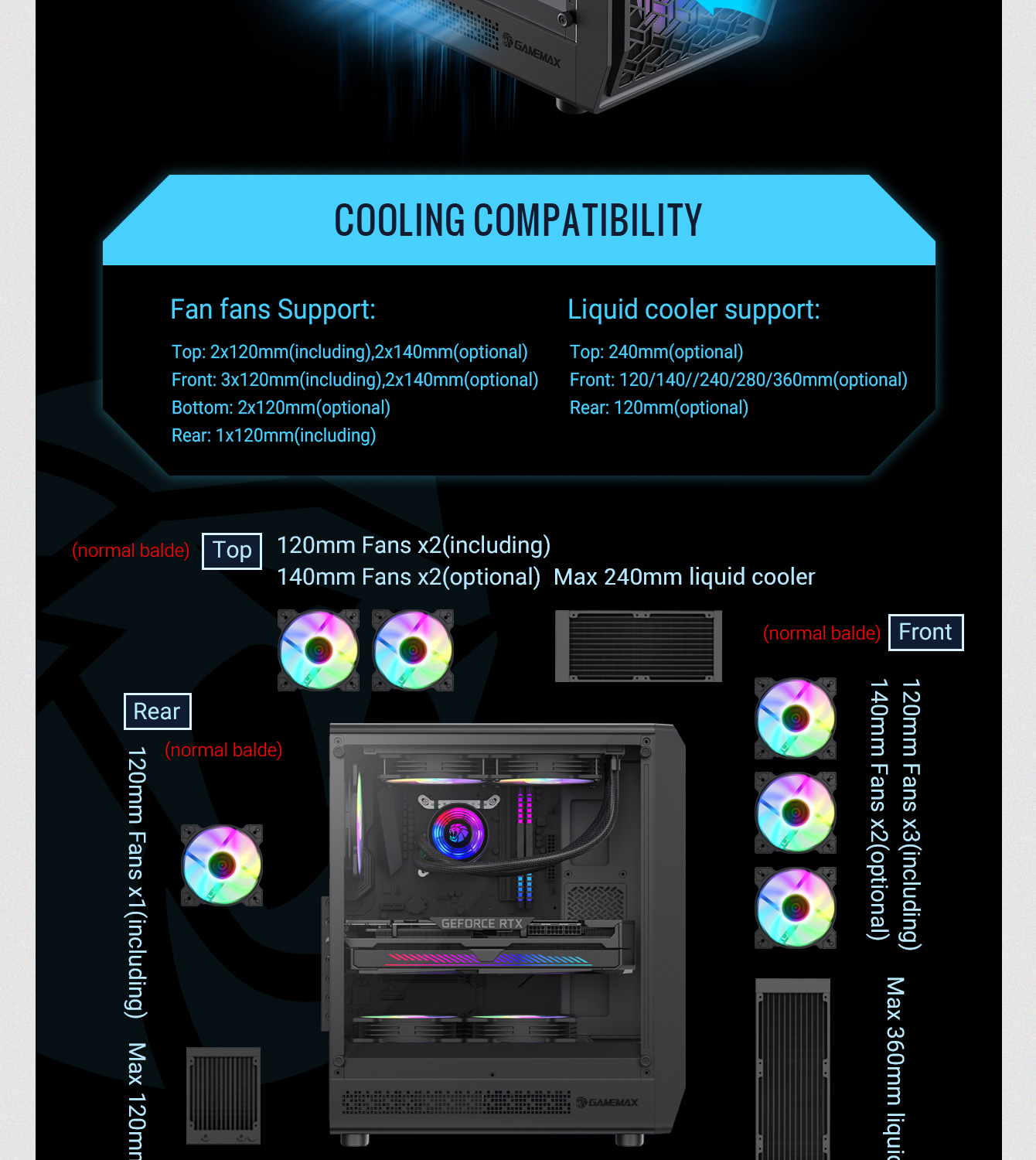 | Cooling Fan Support | Front | 3x120mm(included) |