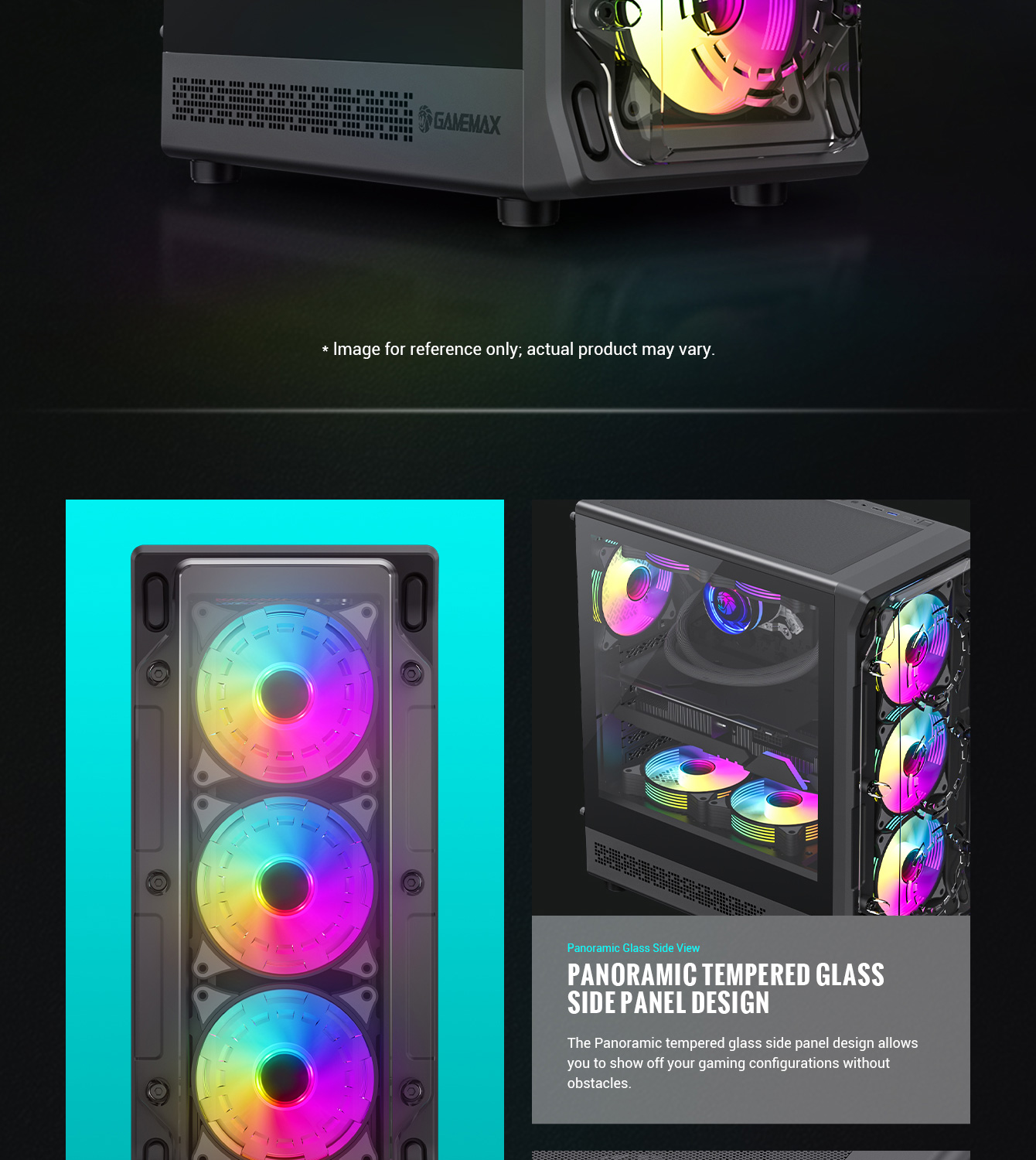 • Tempered Glass Side Panel: Showcases internal components and RGB lighting with a sleek glass design.