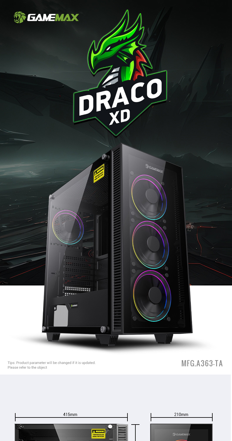 Draco XD with new Dual RING ARGB fan mid-tower case. Designed with ease of build and finished with a premium aesthetic this case is for those wanting to go to the next level without breaking the bank