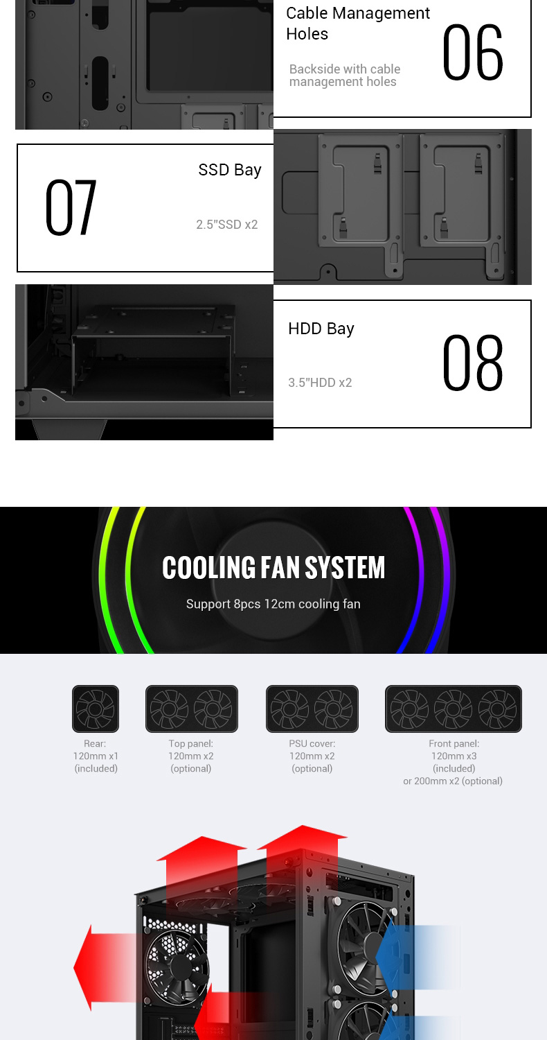 | Cooling Fan Support | Front | 3x120mm(included) |