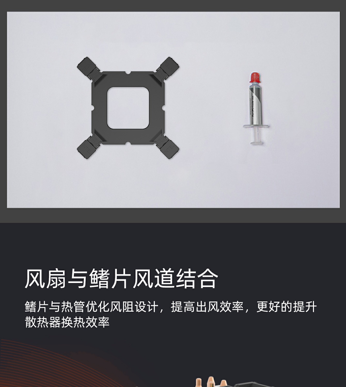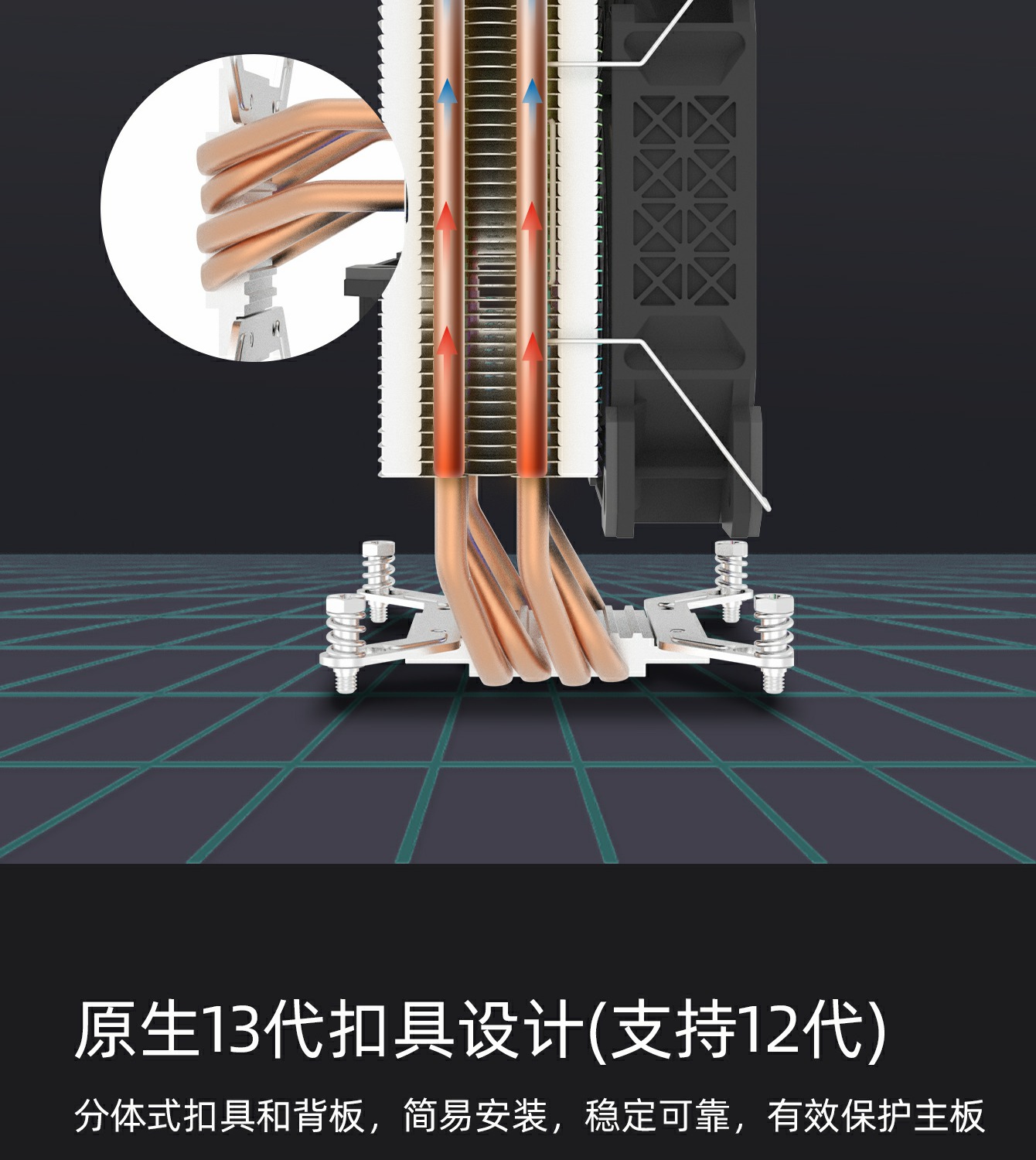 12寸4管单风扇PWM定彩散热器,Intel单平台,TDP190W,免拆风扇,快速安装,可压12代i7不带K。