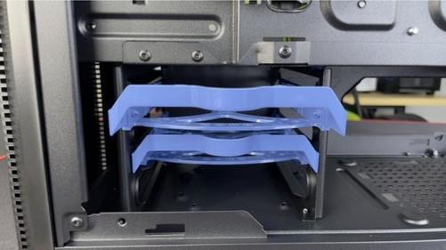 机箱采用了分体式的五金架构,电源下置,独立的电源仓设计,可以有效的隔绝电源工作时产生的震动及噪音。另外硬盘区域也做了独立的分割区域划分.这样设计的优势在于,分离式独立风道的作用不是挡住噪音。二是降低电源风扇的噪音。