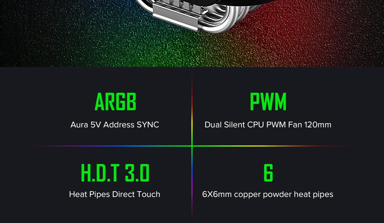 • Sync with the ARGB fan lights like the rainbow, stylish and cool, full of personality.