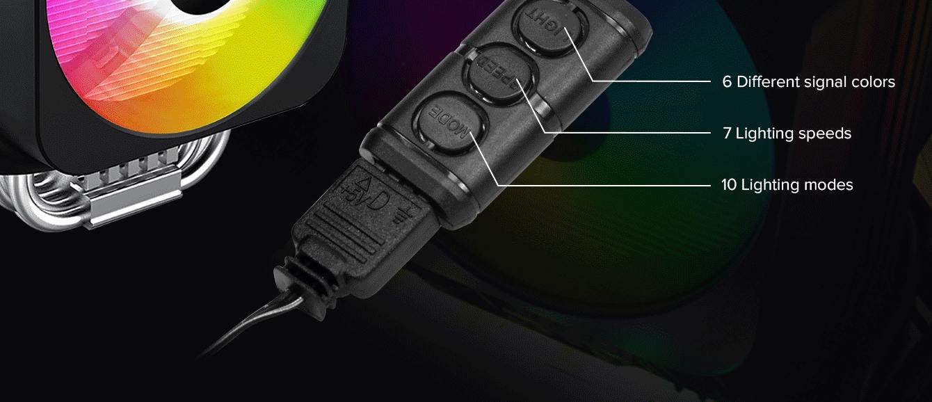 • 6 x different solid colors and 10 lighting modes controlled by HUB controller or SYNC with MB by unlimited changes.