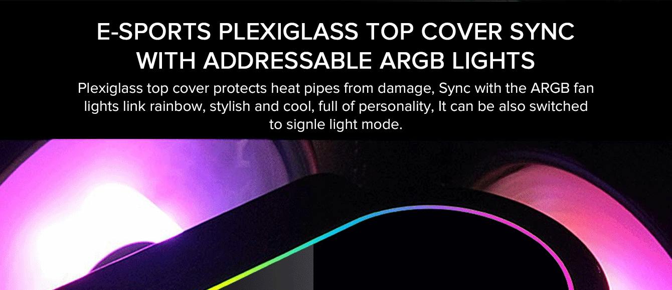 • 【E-sports Plexiglass Definable RGB LED Top Guard】Top guard, syncs with ARGB Version, and protects heat pipes from damage