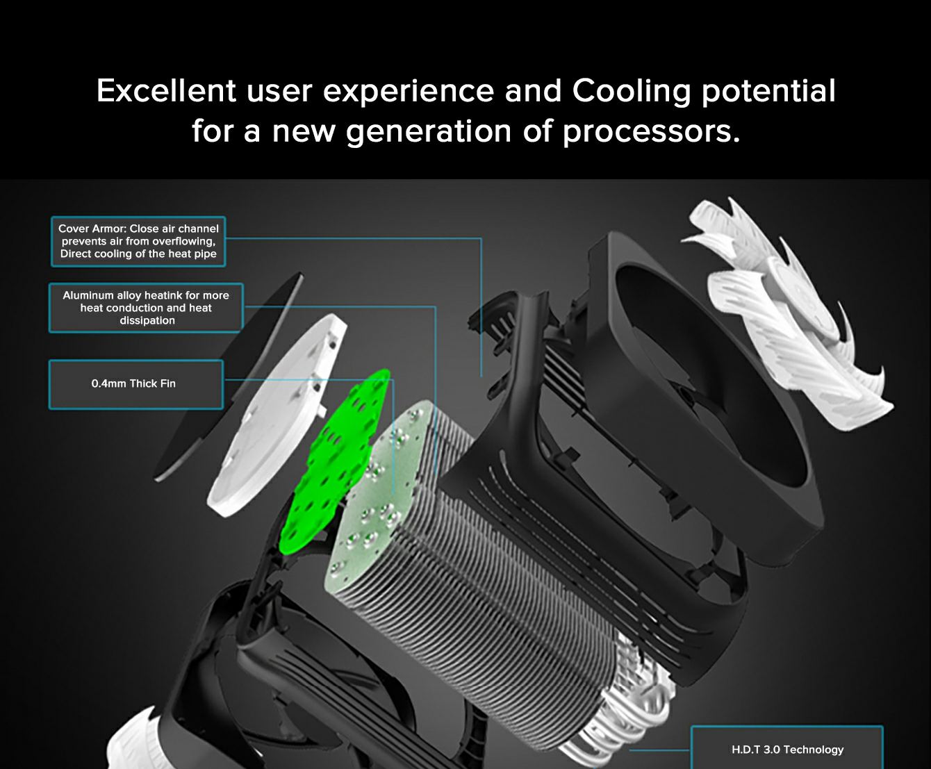 • The heat pipe is in direct contact with the CPU to achieve efficient and rapid heat transfer for maximum heat dissipation