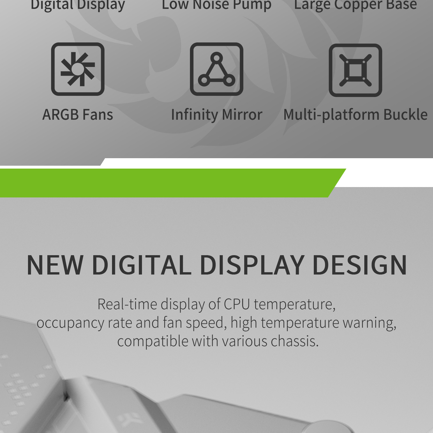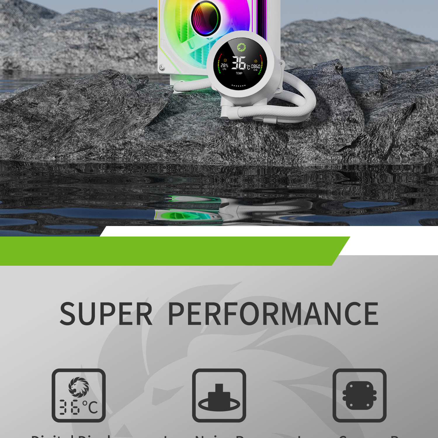 • Superior Cooling Performance: Features an efficient cold plate, copper base, and optimized fans for maximum heat dissipation.