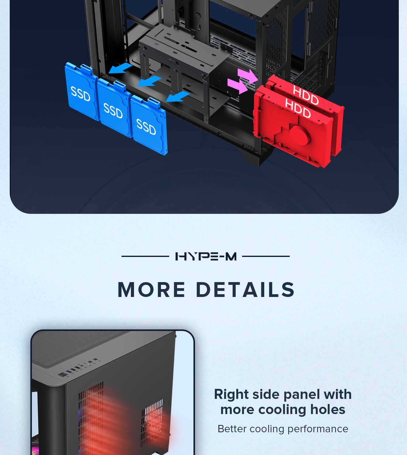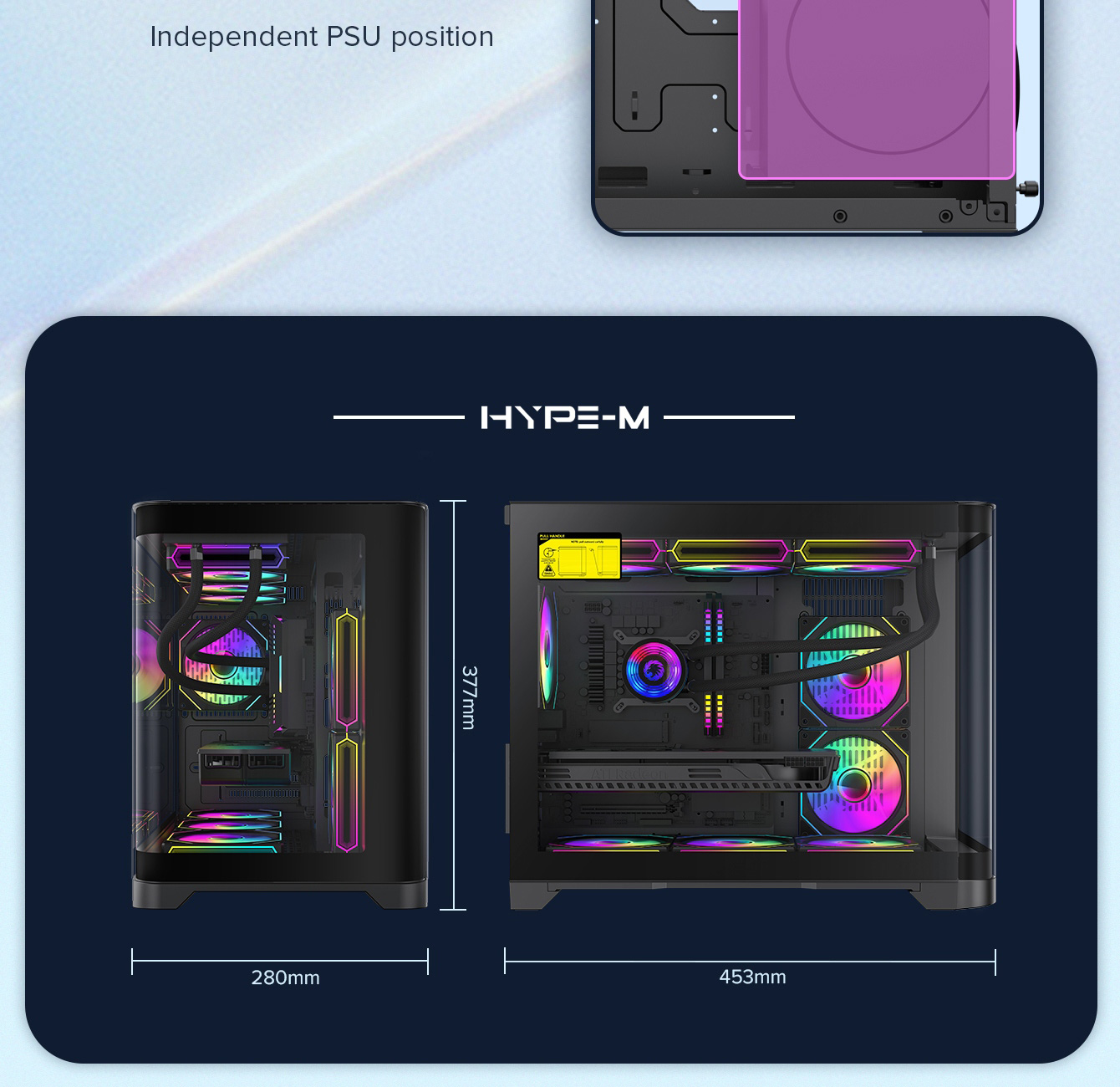 HYPE-M Premium Micro ATX PC case by GameMax- has a unique airflow path allowing for a wide range of compatibility and plenty of cooling options