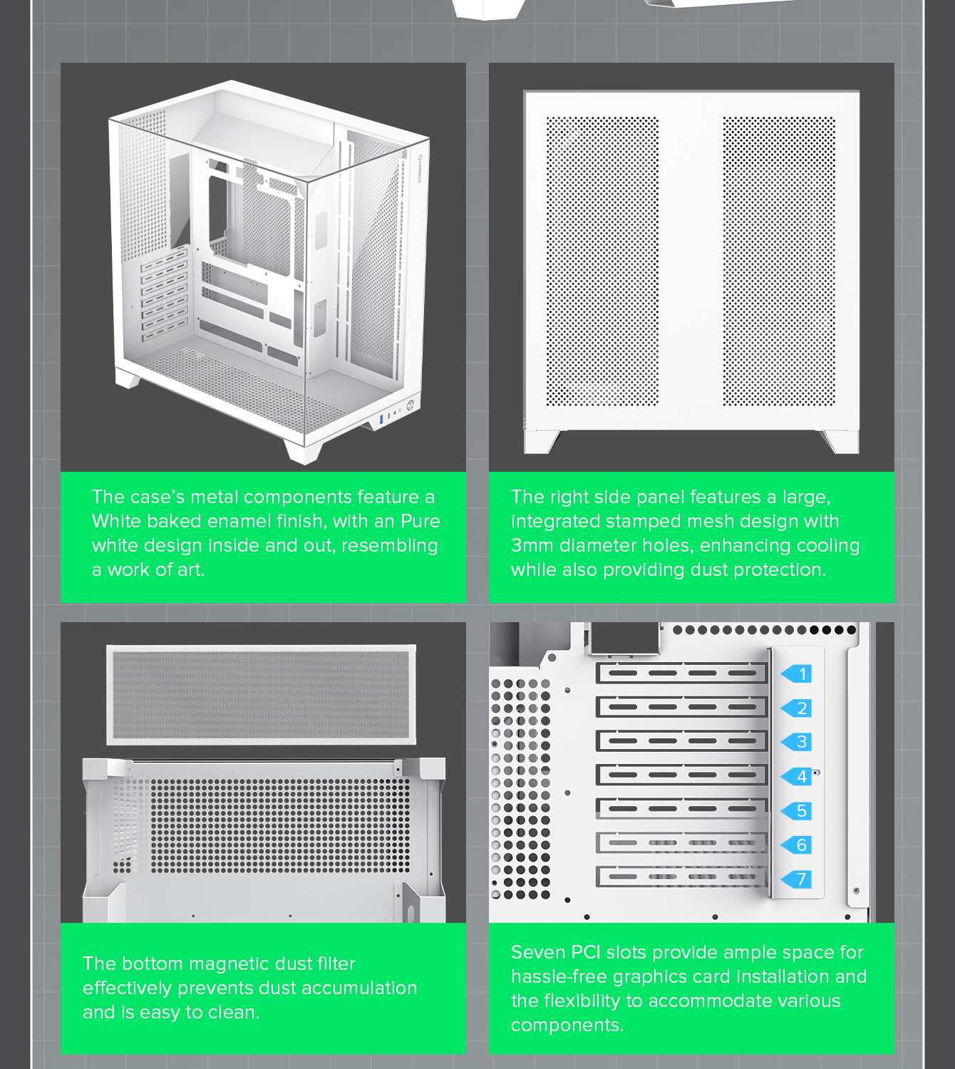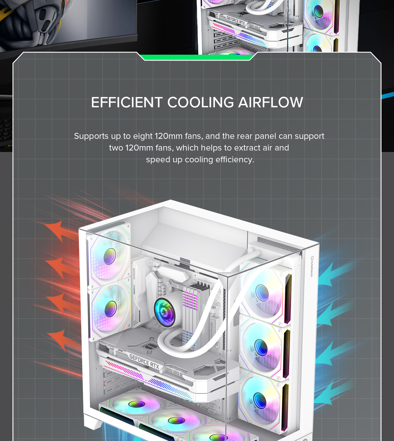 • Advanced Cooling:Supports up to 8 fans and water cooling radiators for optimal thermal performance.