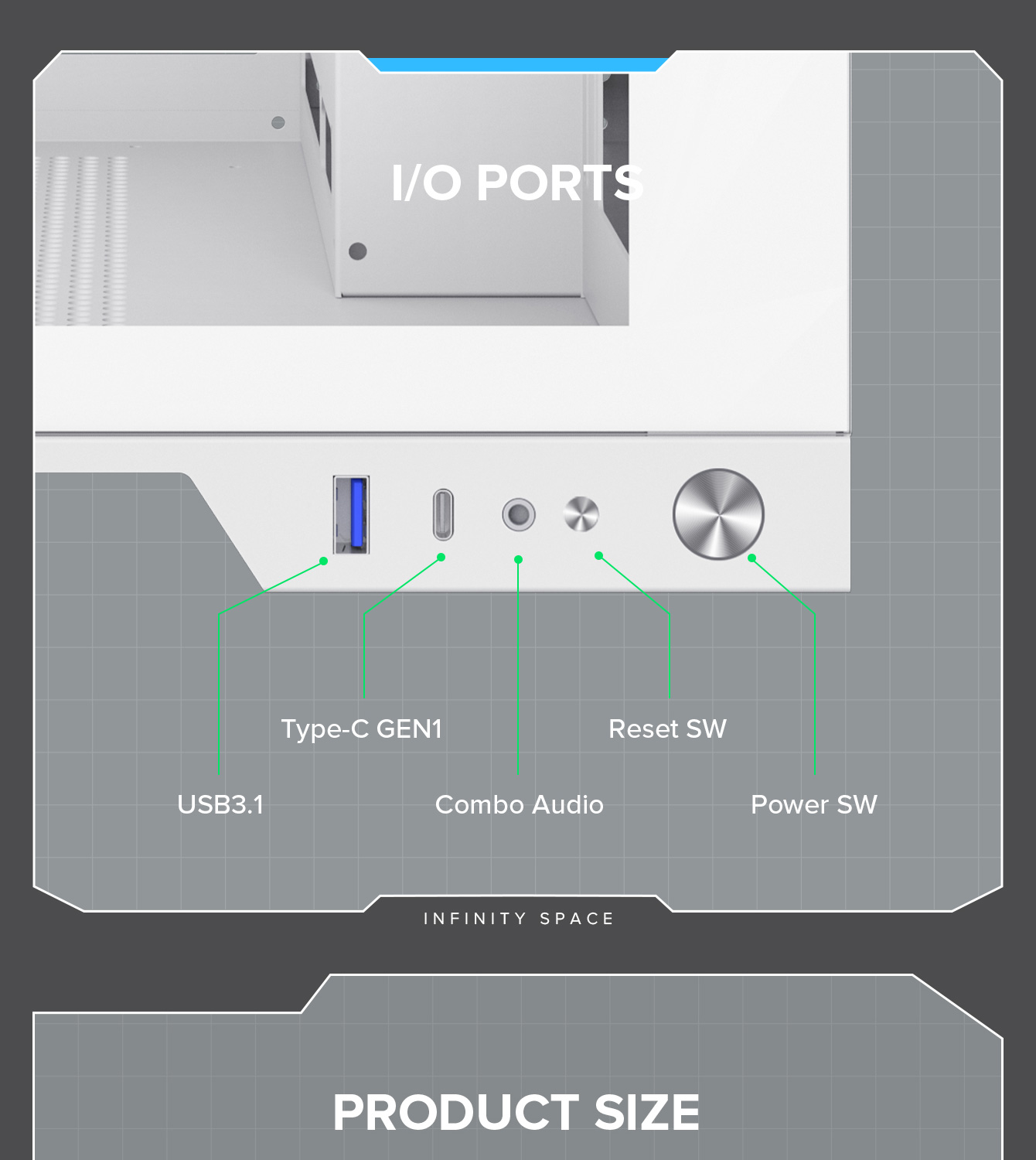 • Convenient I/O:Includes USB 3.1 Gen1 port and combo audio jack, with an optional RGB controller for customization.