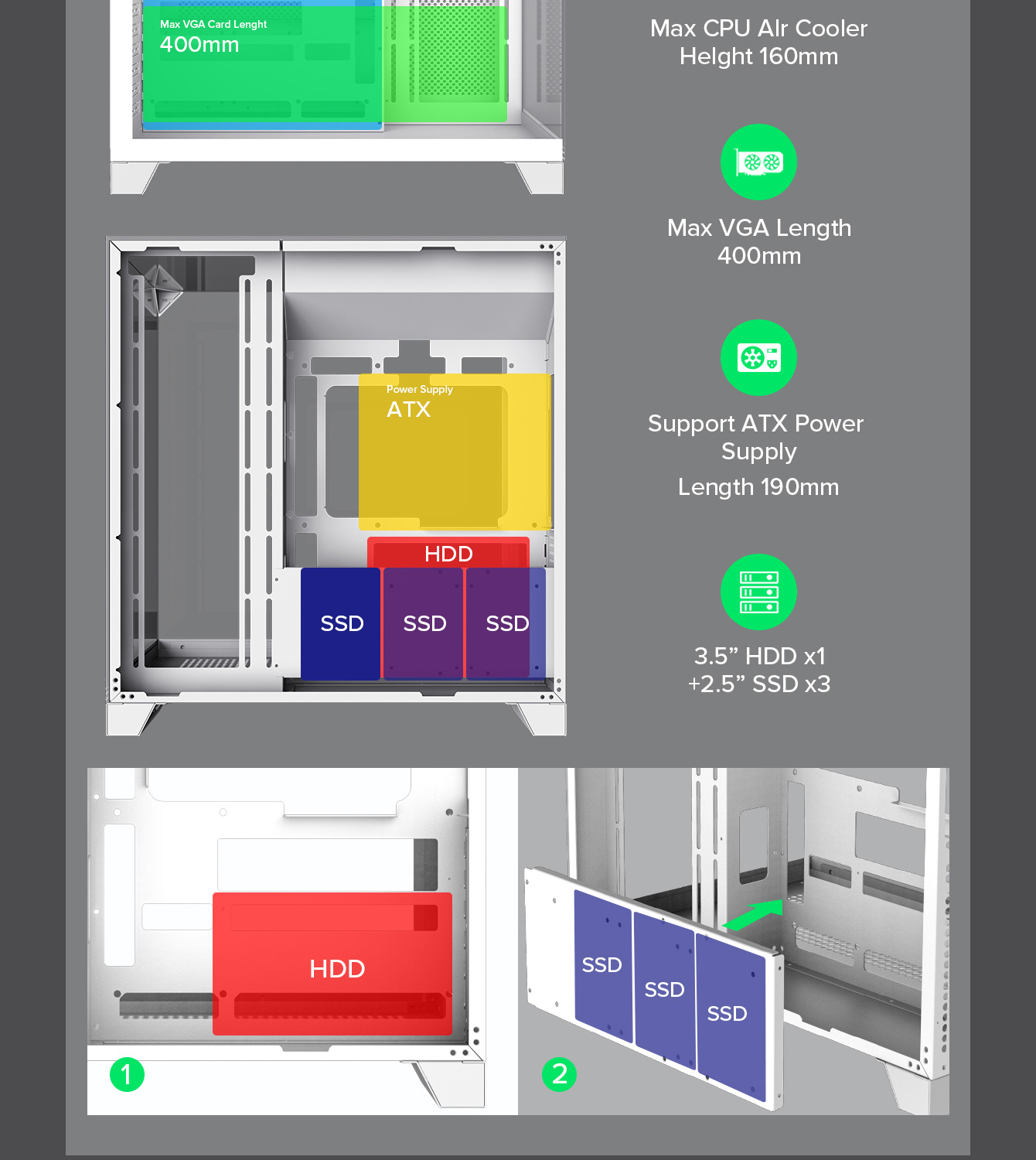 • Compatibility & Form Factor:Supports ATX, M-ATX, and ITX motherboards for flexible build options.