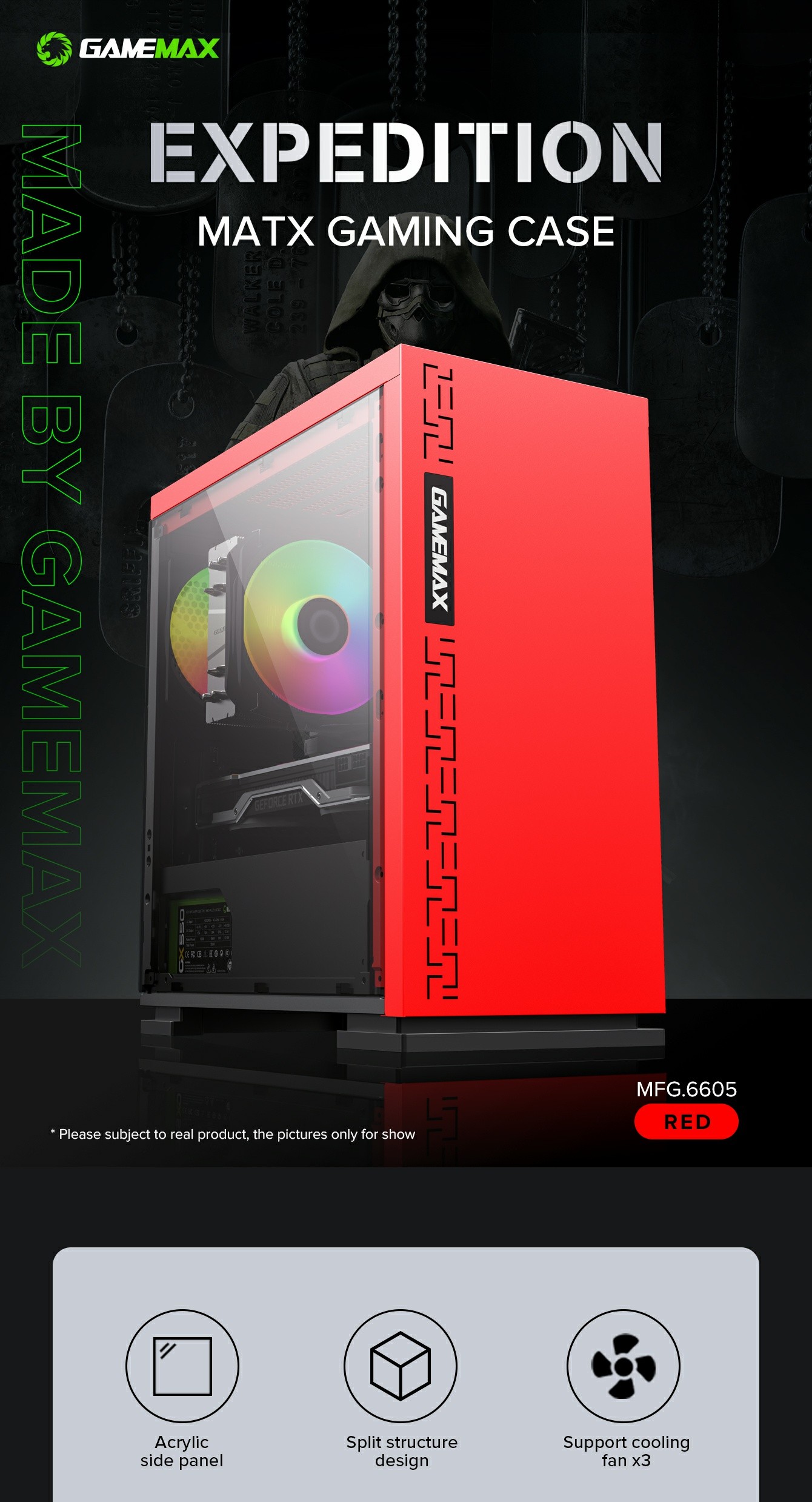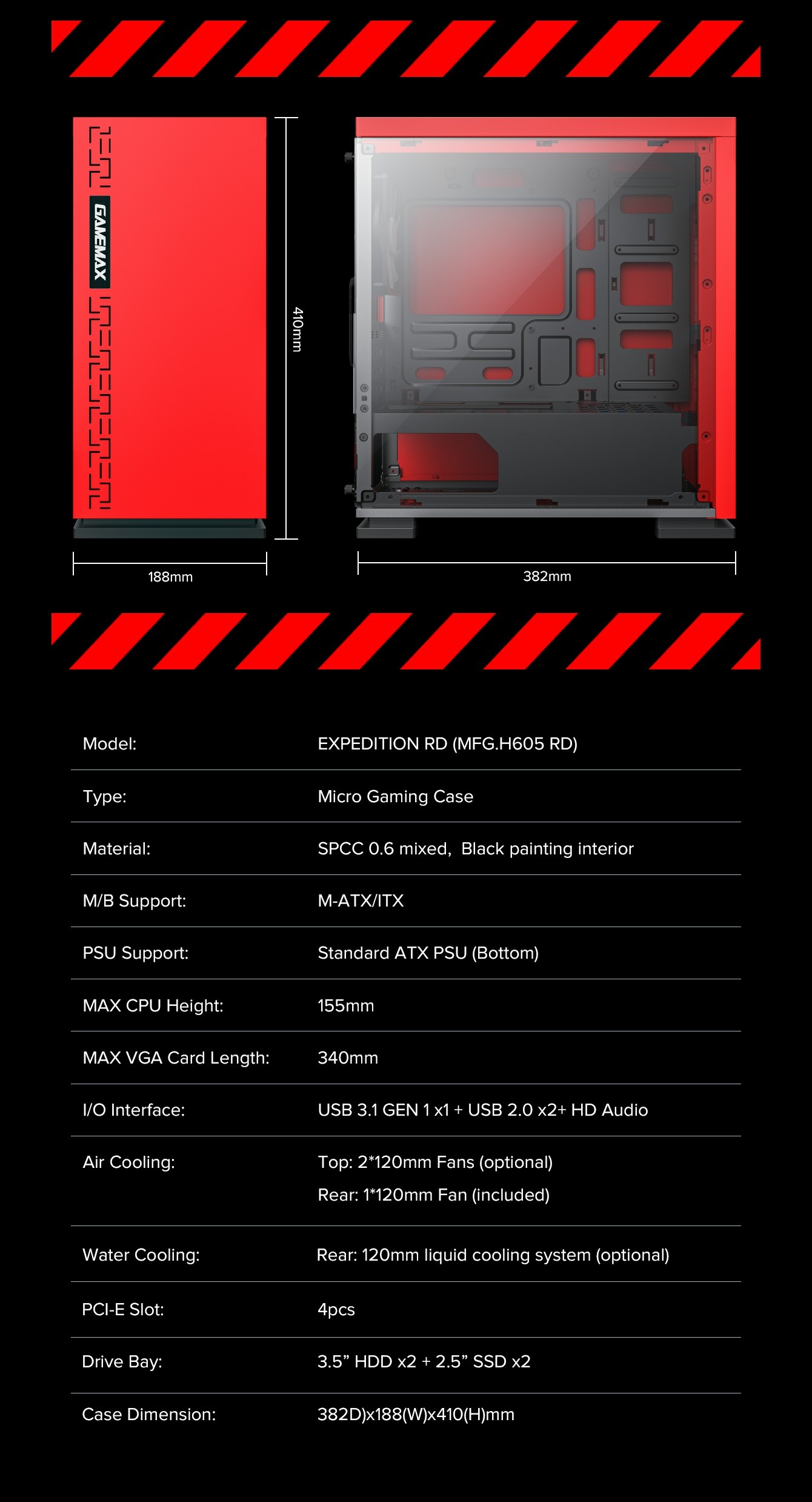 GameMax Expedition(H605) Micro mini tower gaming case ,MATX Structure, Compact design and included 1x 12cm FRGB fan