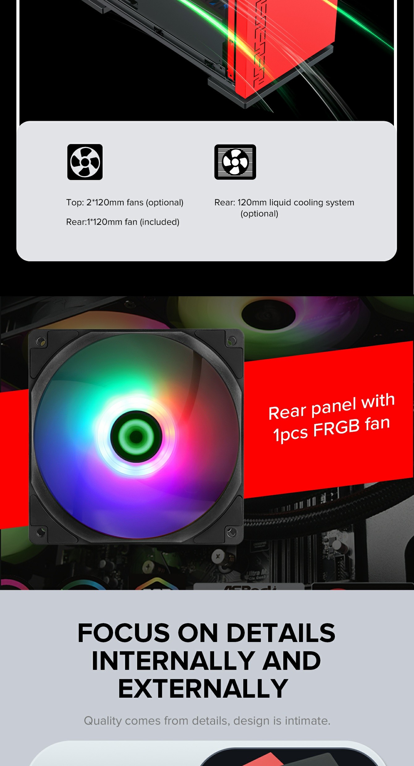 | Rear: 1x 120mm 15 leds Fan(Included) | |
