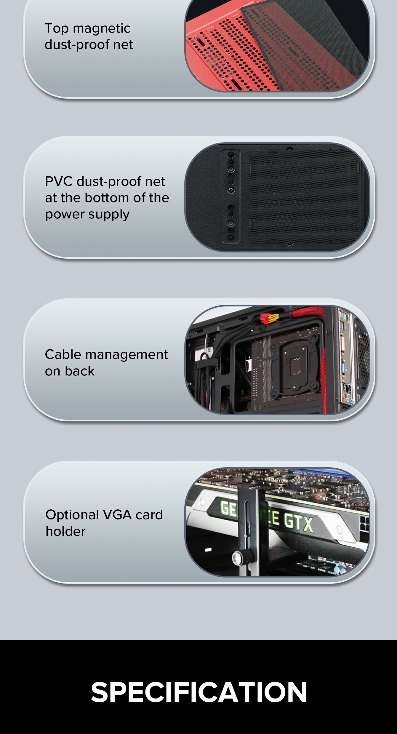 • Chassis Type:Micro-Gaming Mid-Tower Case