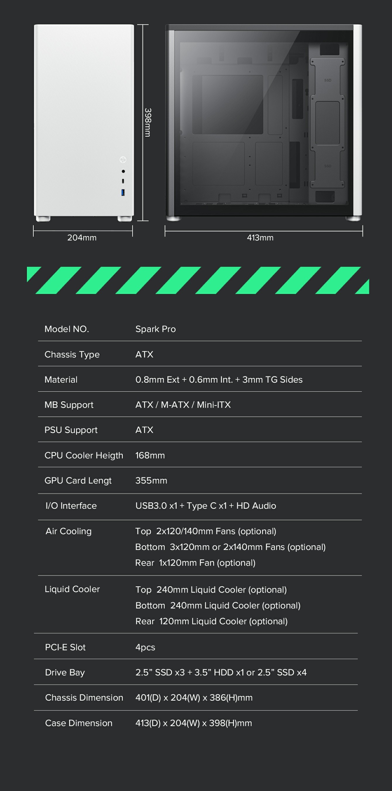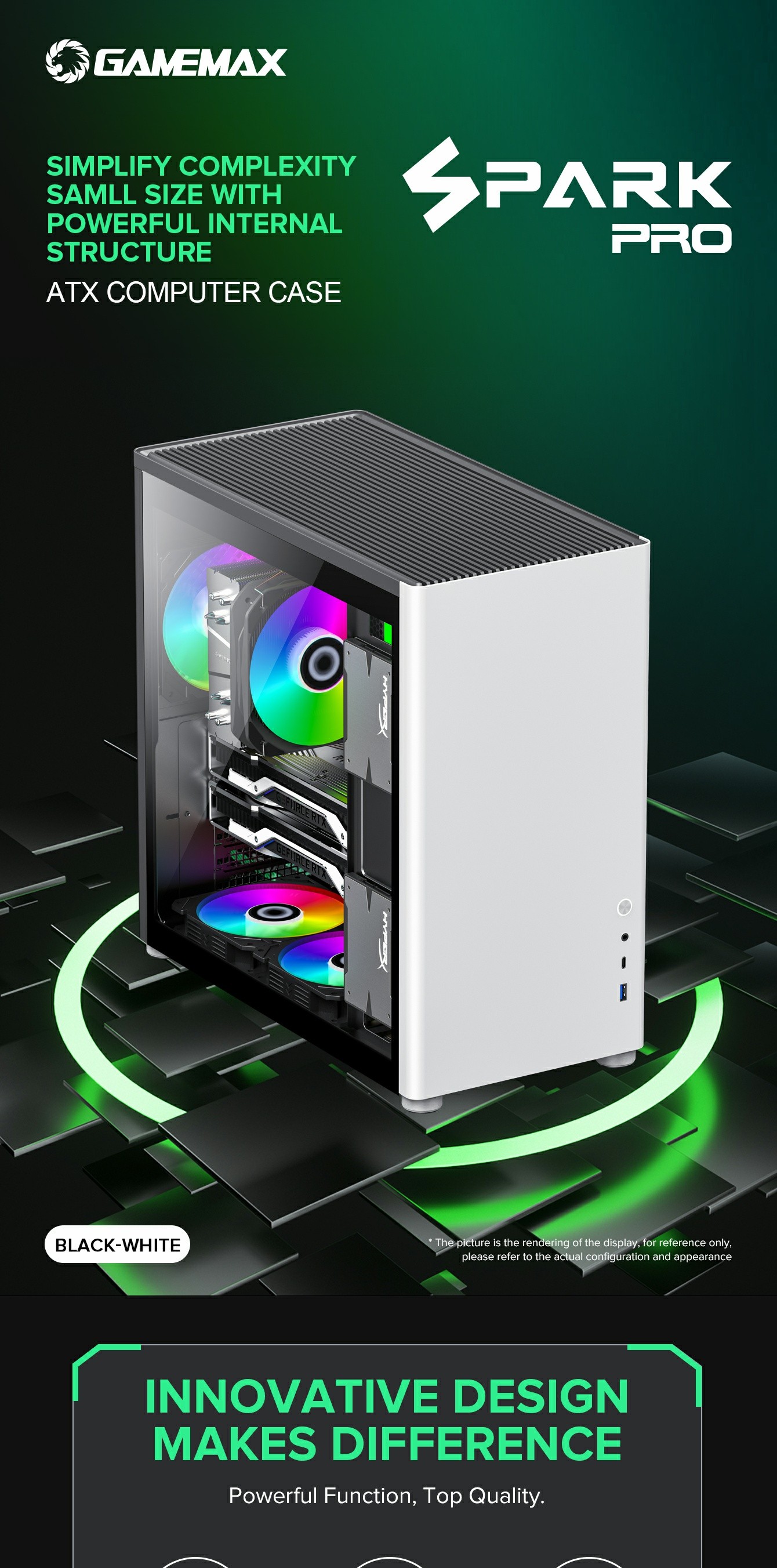 Spark Pro ATX Chassis, with featured vertical airflow designed game case, which makes complex into simple, blends in the home