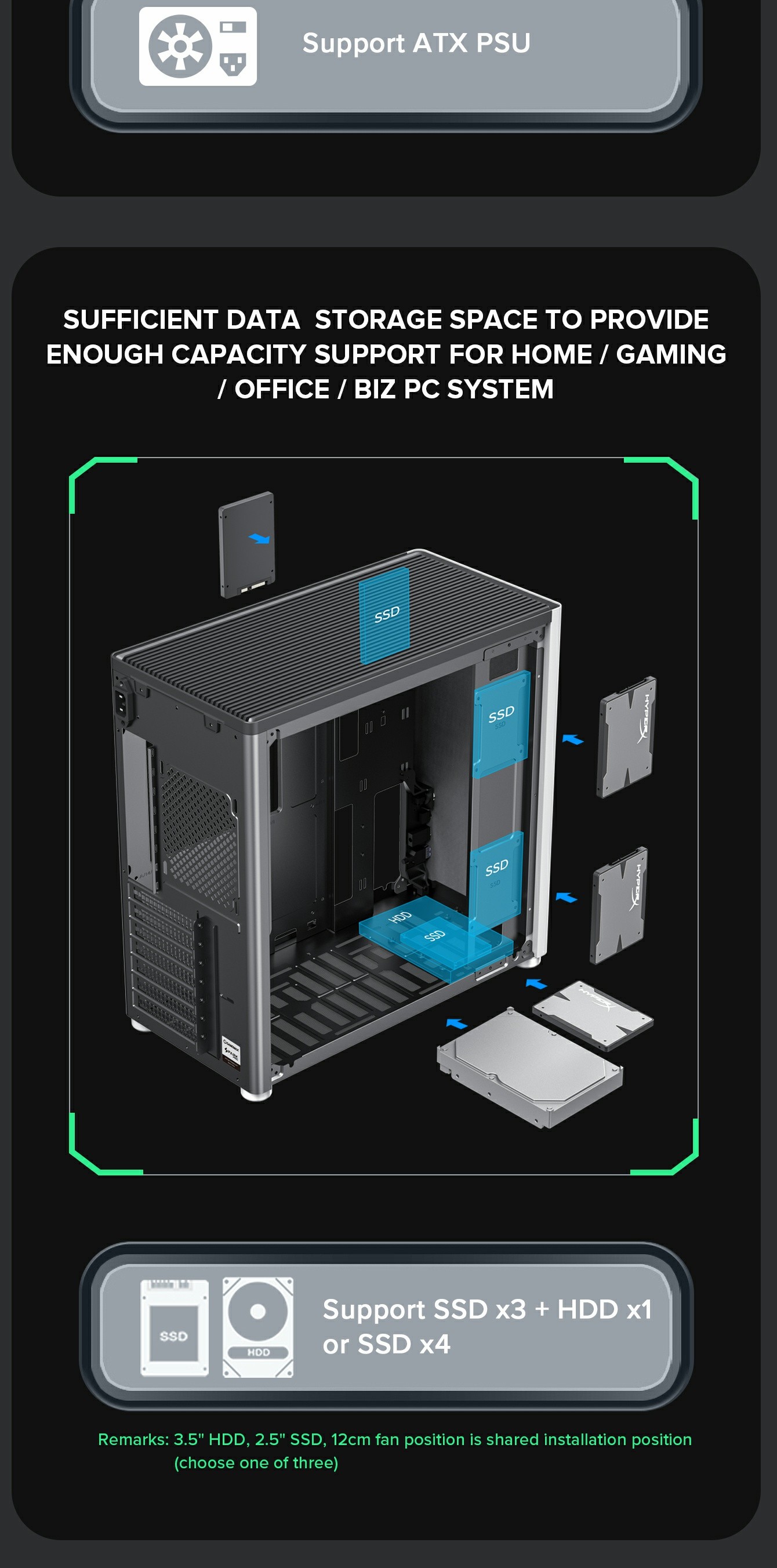 | Internal Drive Bay(s) | 3.5" (HDD) | 3.5" x 1+SSDx 3 or SSD*4 |