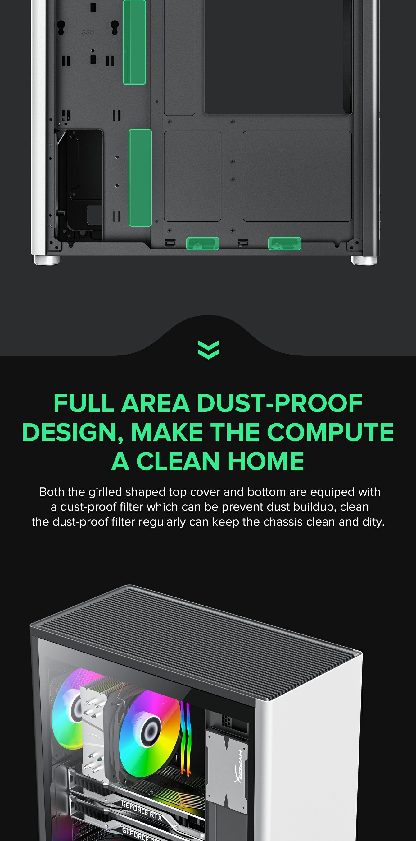 • The bottom fan position blows directly to the graphics card to optimize cooling performance to maximum