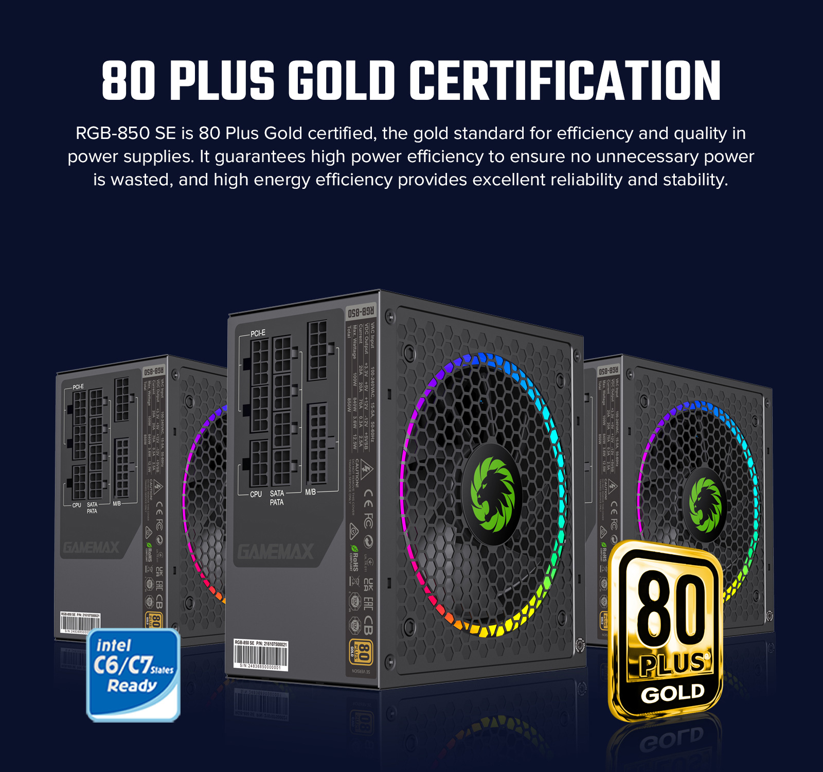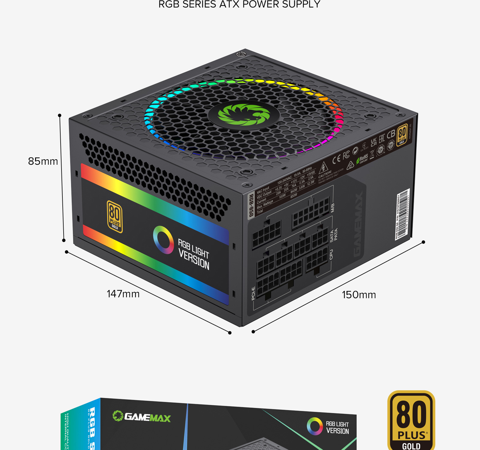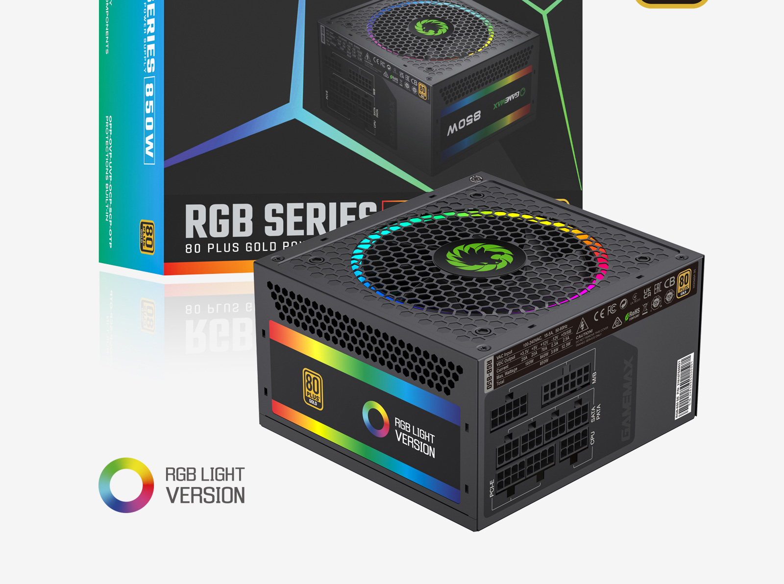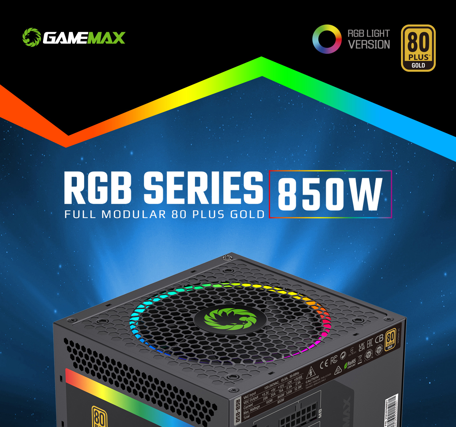 GameMax RGB Series 850W Power Supply 80 Plus Gold Certified Efficiency: