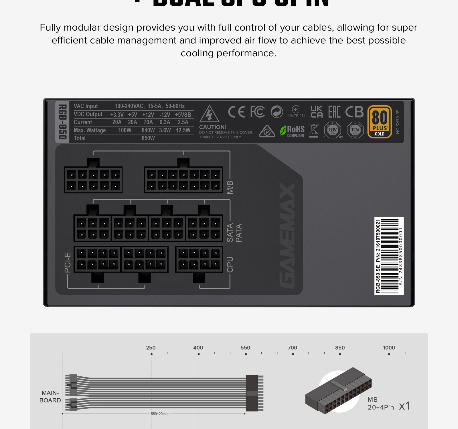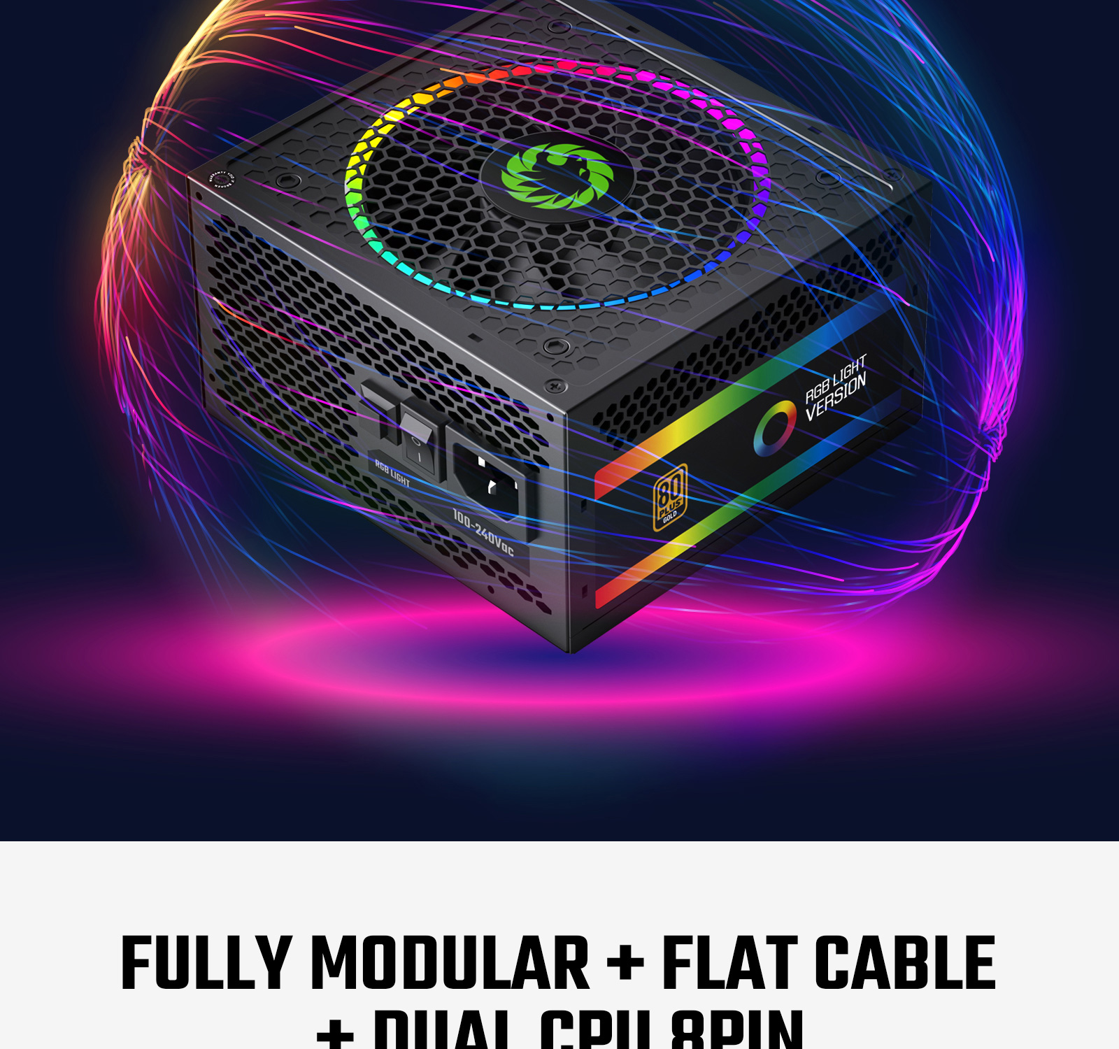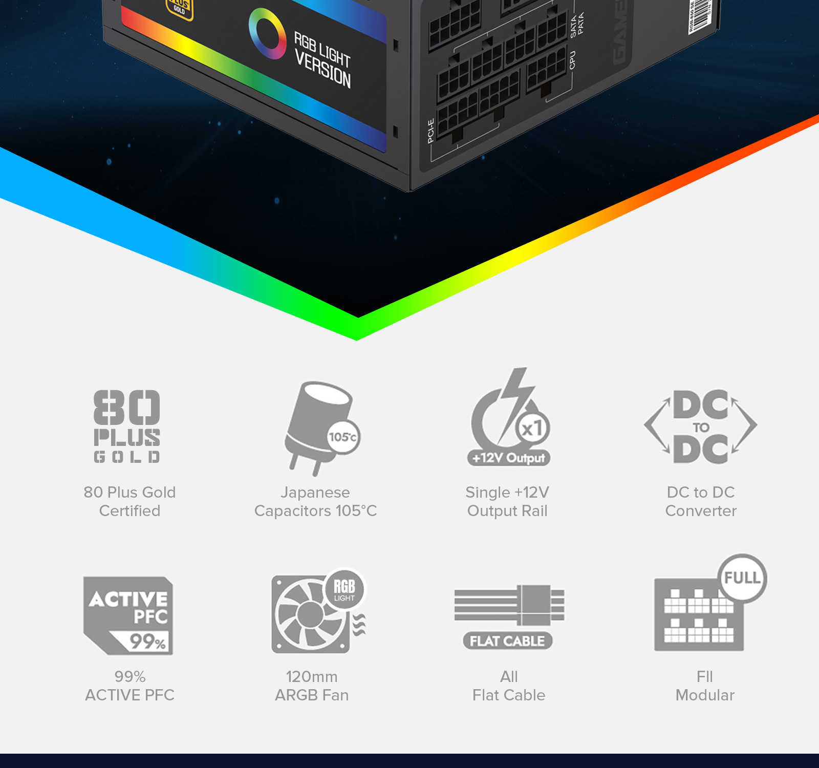 GameMax RGB Series 850W Power Supply 80 Plus Gold Certified Efficiency: