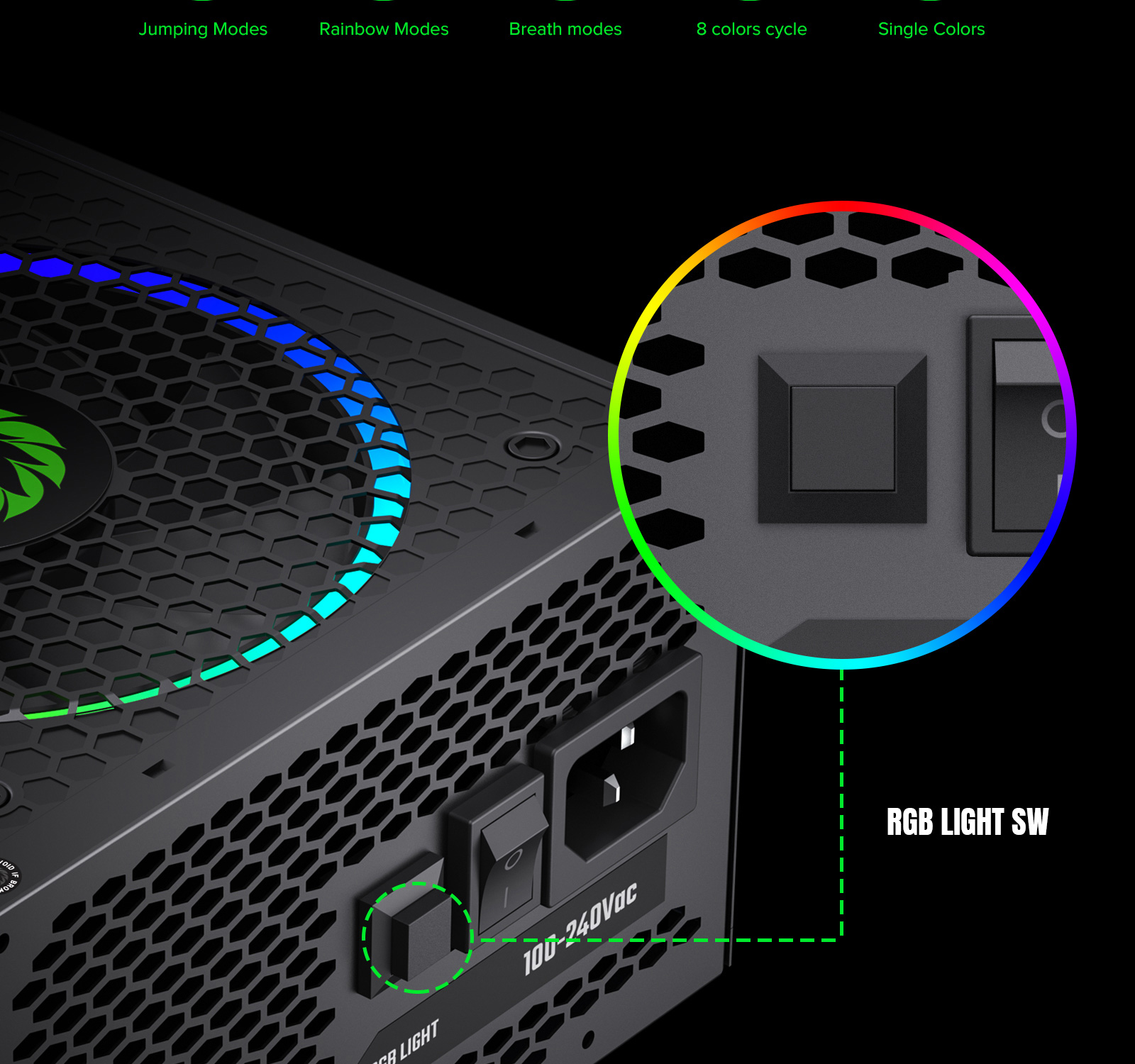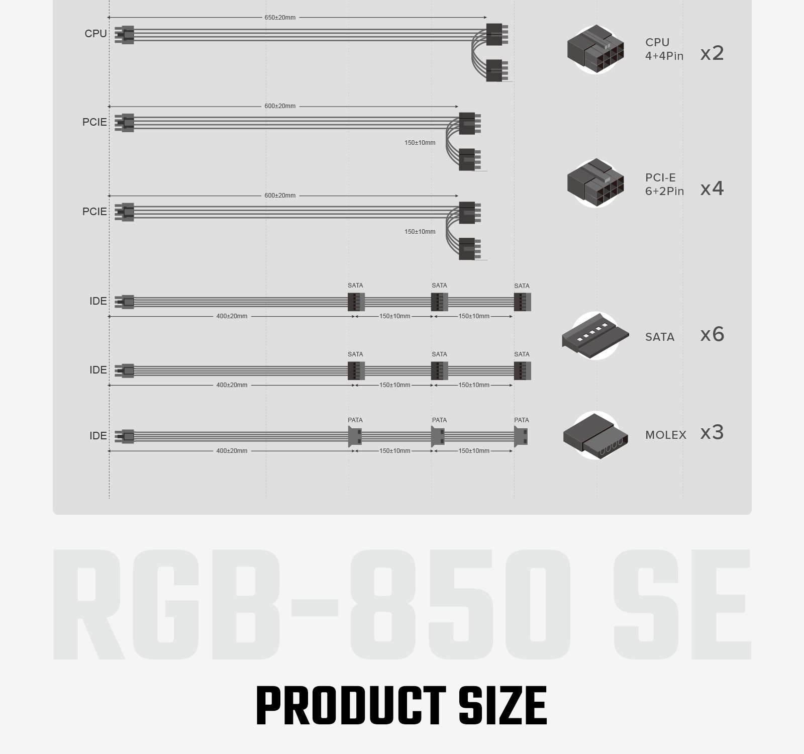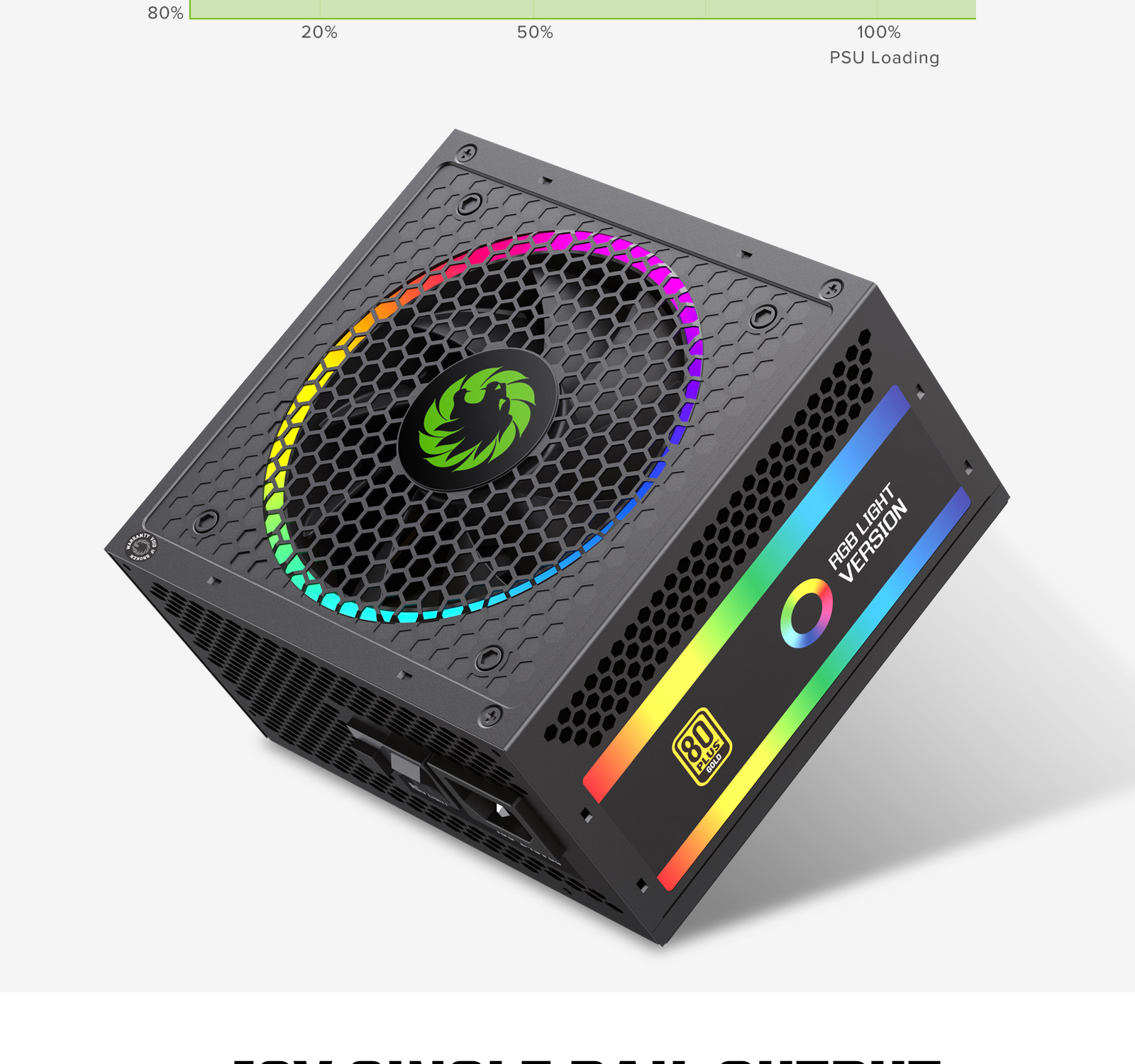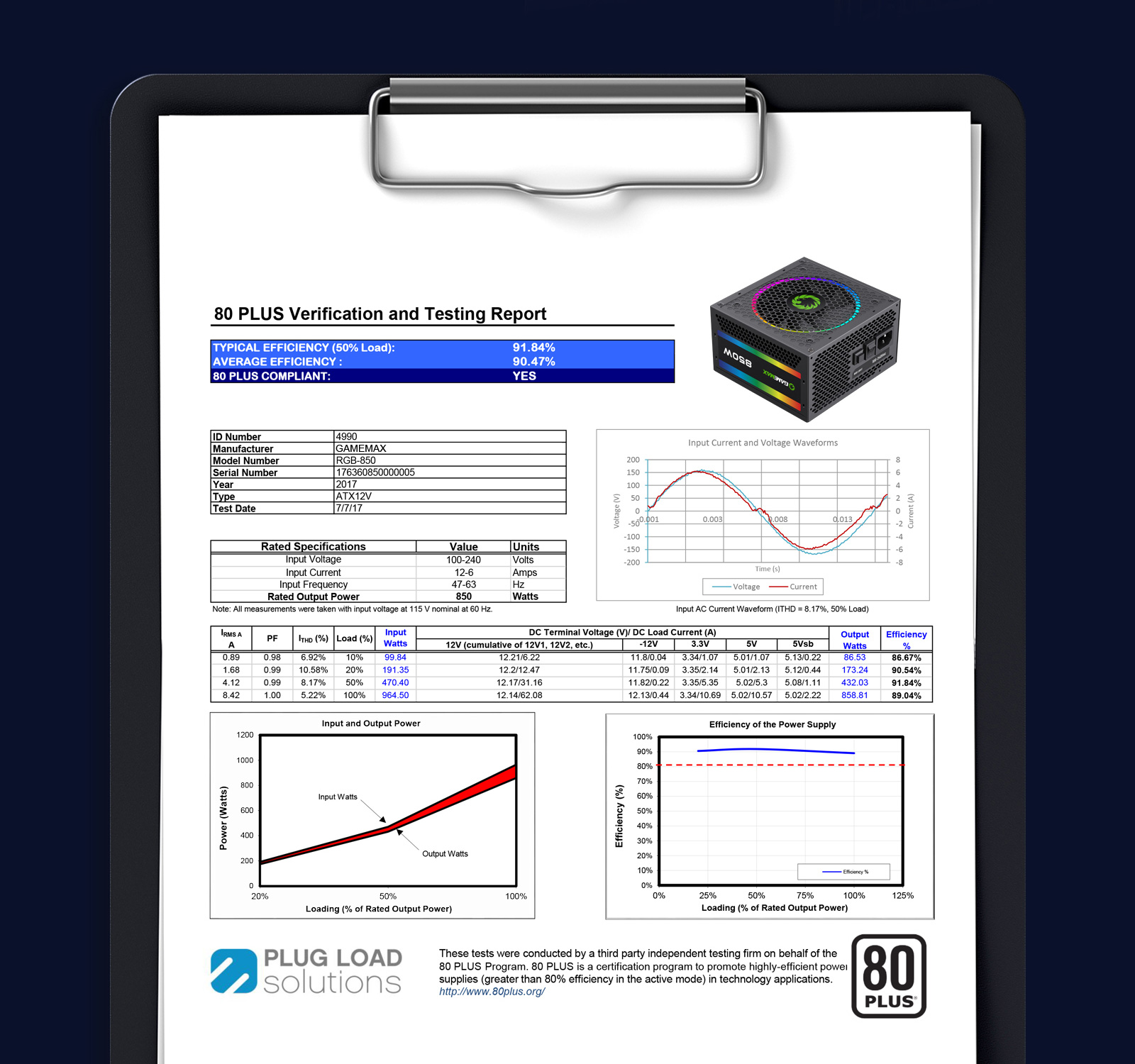 GameMax RGB Series 850W Power Supply 80 Plus Gold Certified Efficiency: