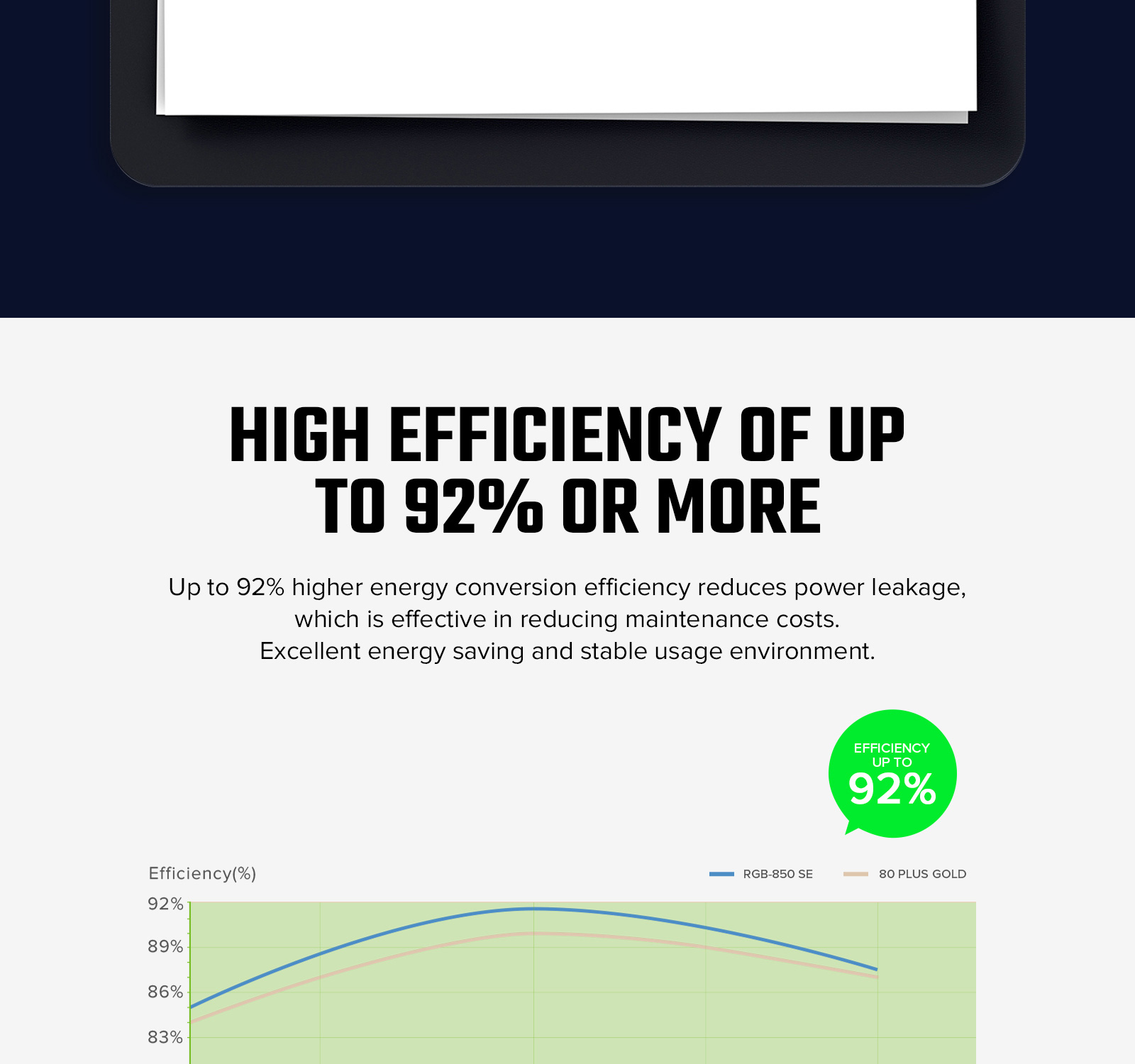 • 80 Plus Gold Certified Efficiency: Achieves up to 92% energy efficiency, reducing power waste and ensuring stable, reliable performance.