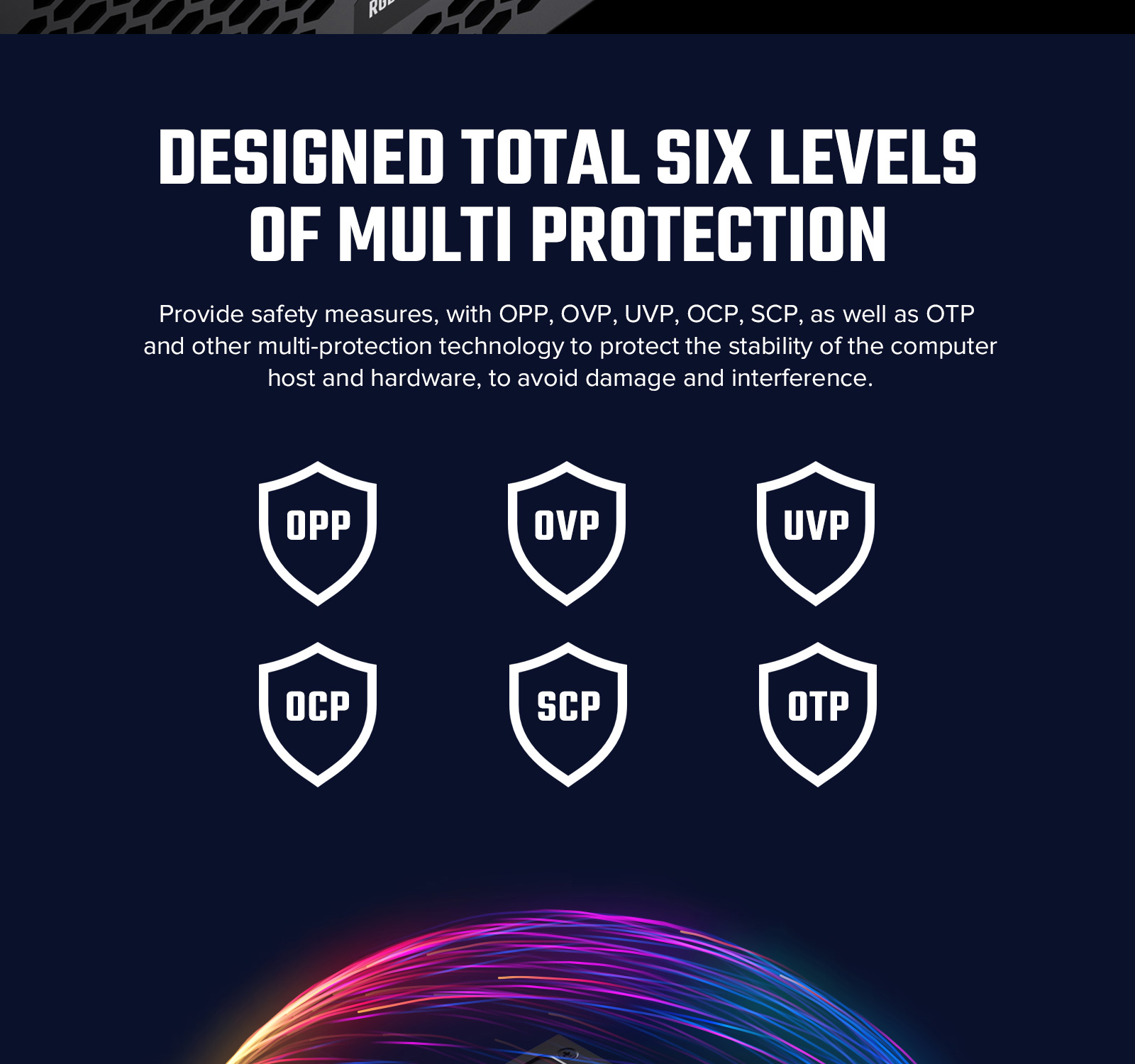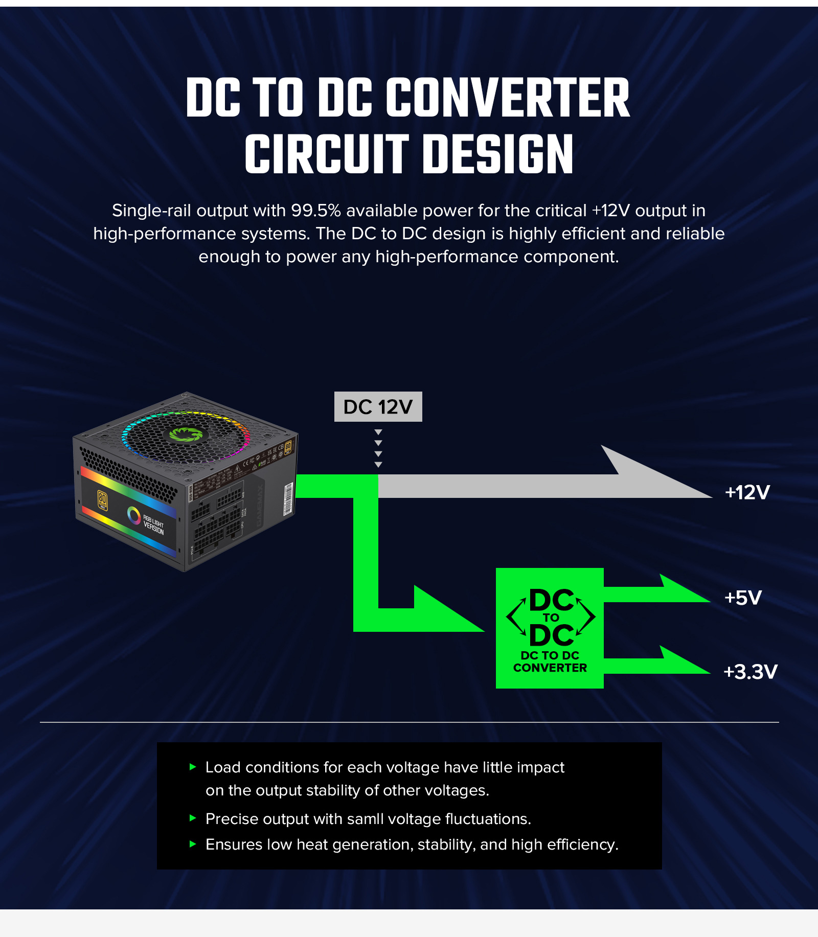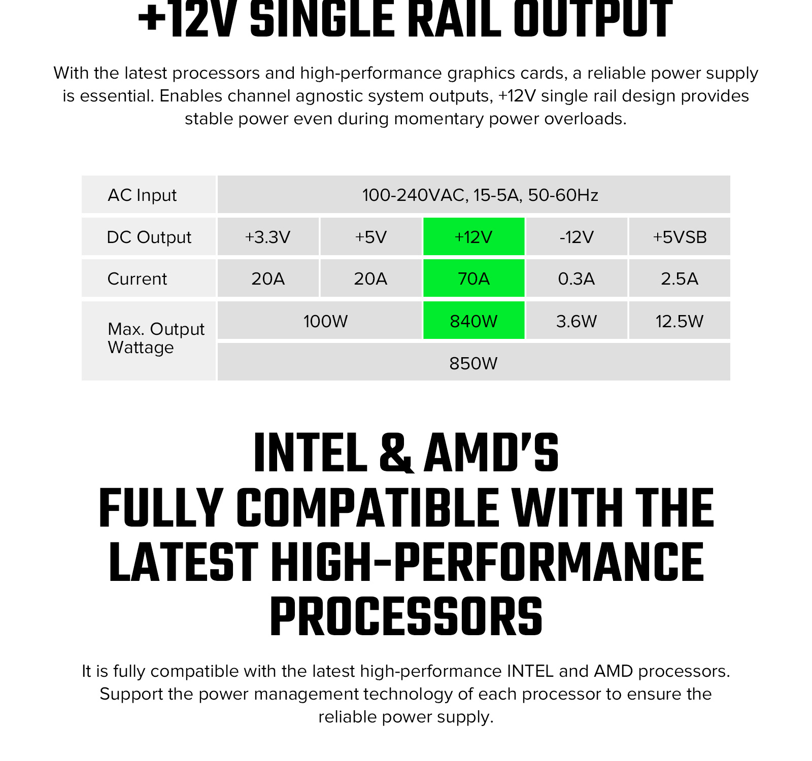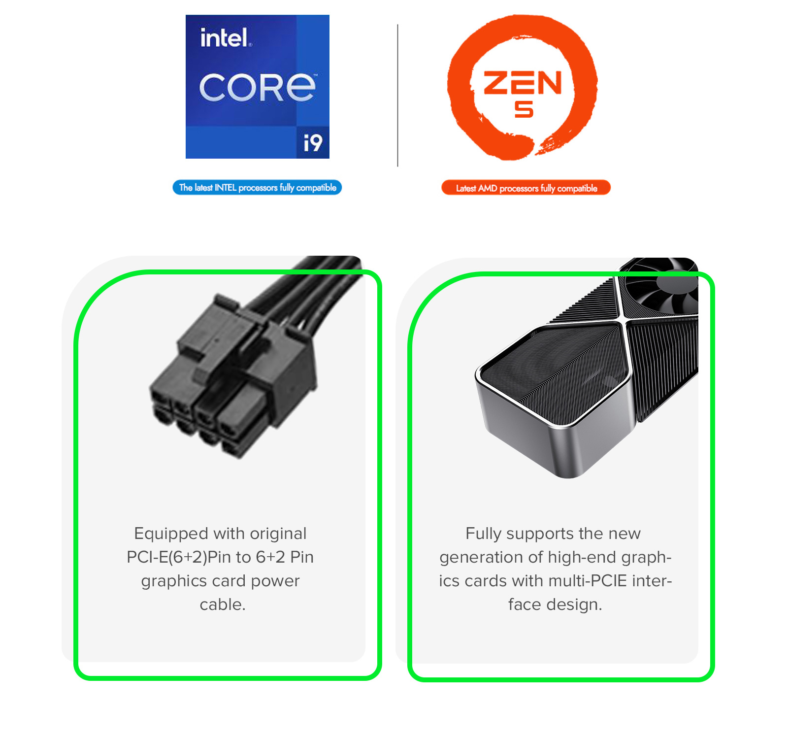 • +12V Single Rail Design: Provides stable power distribution, perfect for high-performance CPUs and GPUs, ensuring system stability even under heavy loads.