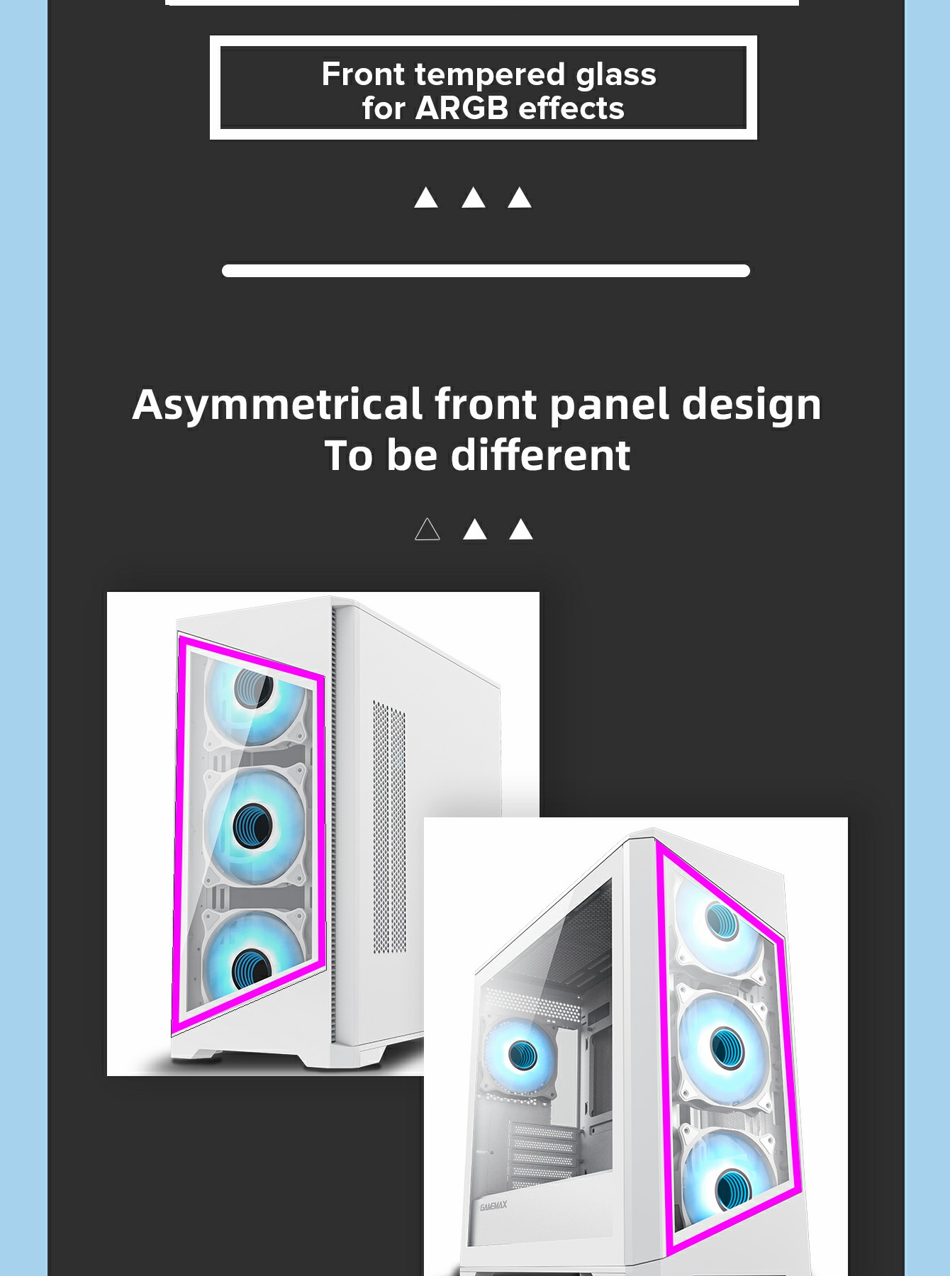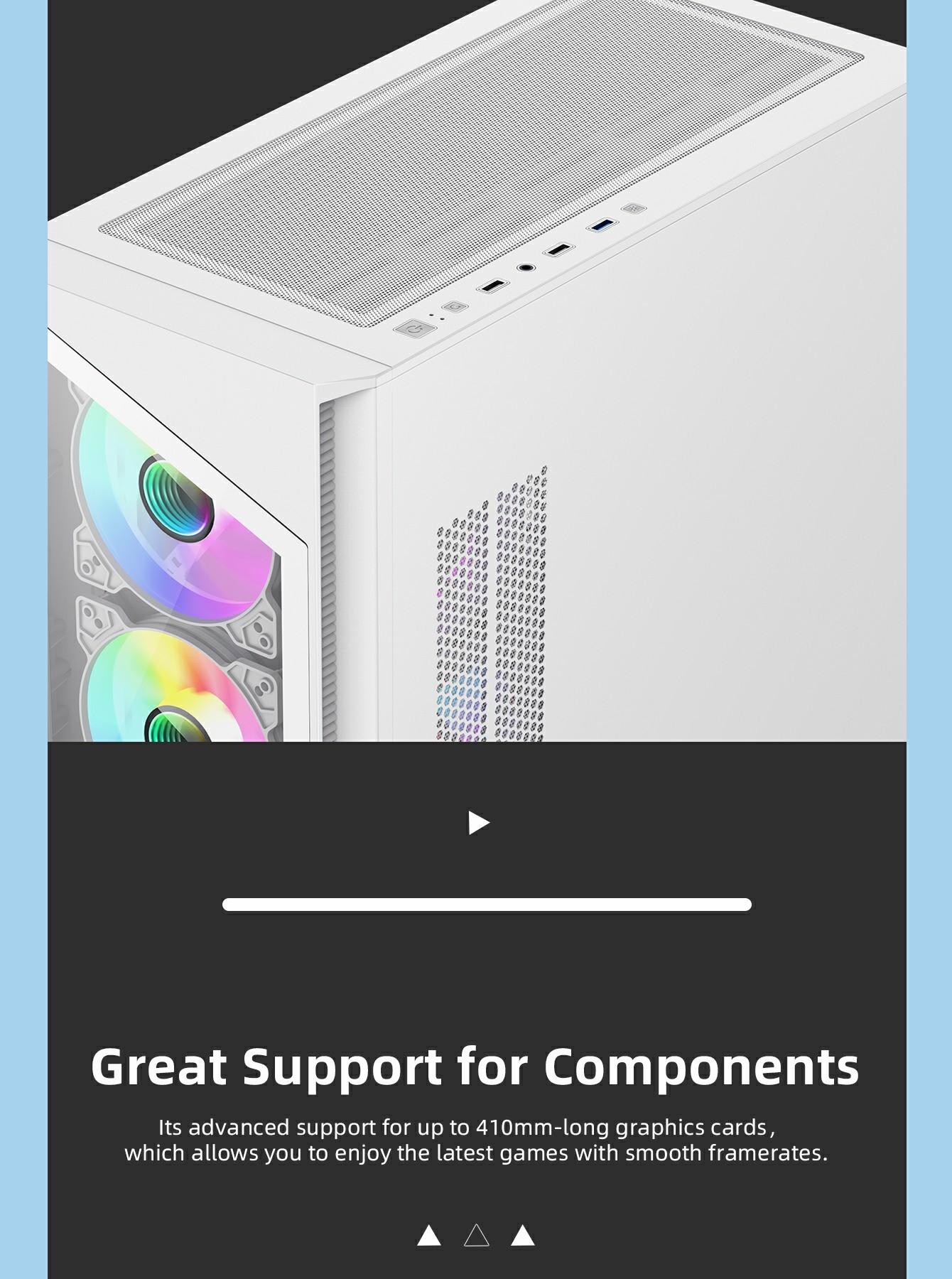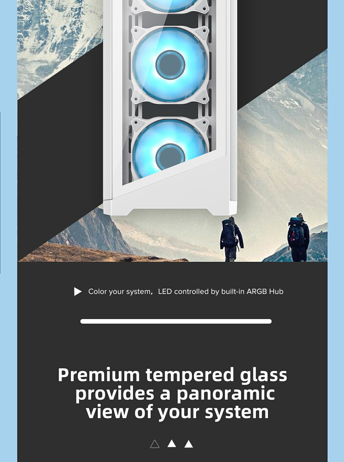 • Tempered Glass Design: Front and side tempered glass panels to showcase your components and ARGB lighting.