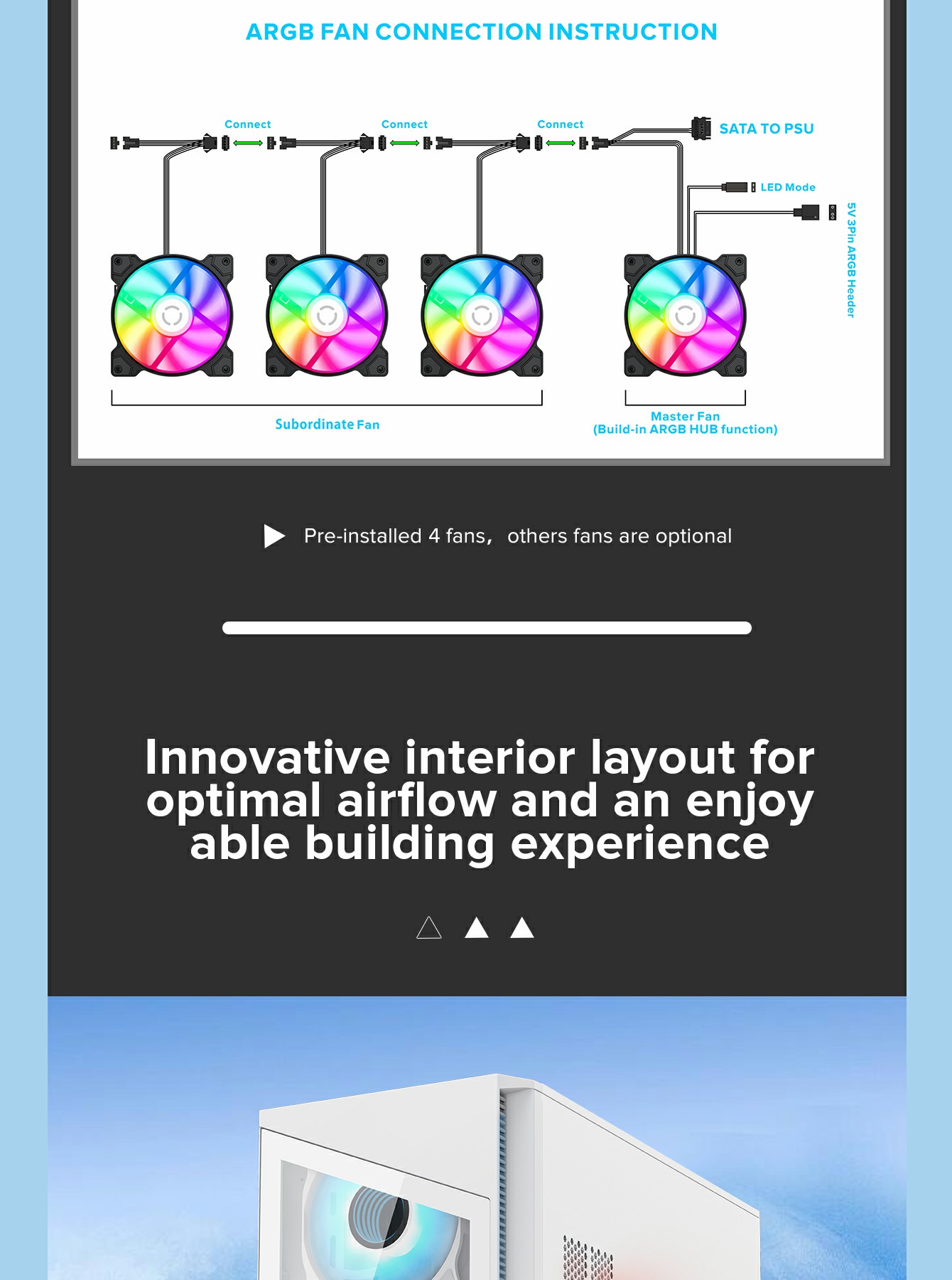 | Cooling Fan Support | Front | 1x12cm ARGB Fan (FN12A-M6I-W) 2x12cm ARGB Fan (FN12A-S6I-W) |