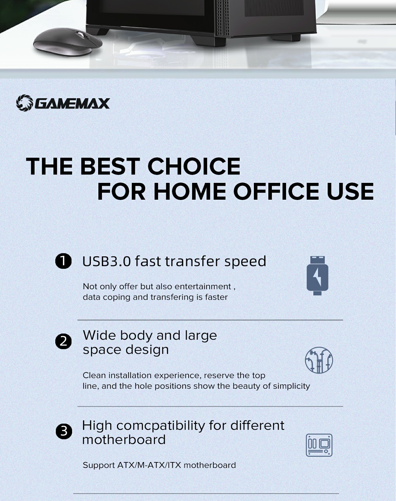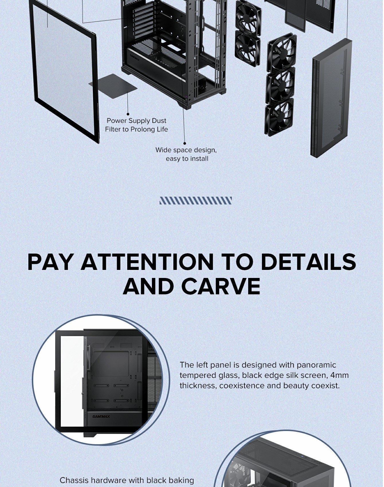 | Dust Cover | Bottom, right side panel and top cover with dust filter | |