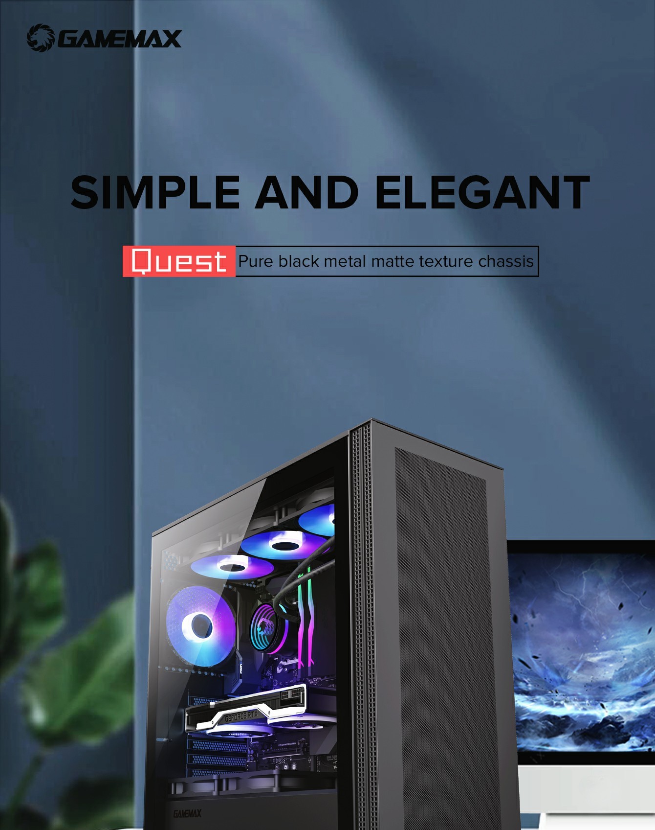 GAMEMAX Quest E-ATX PC Gaming Case, Pre-Installed 1X 120mm Black Fan, Top and Front 360mm Radiator Support, Side Tempered glass and soild metal front panel, Type-C USB3.2 Gen2 2x2 Port Ready!