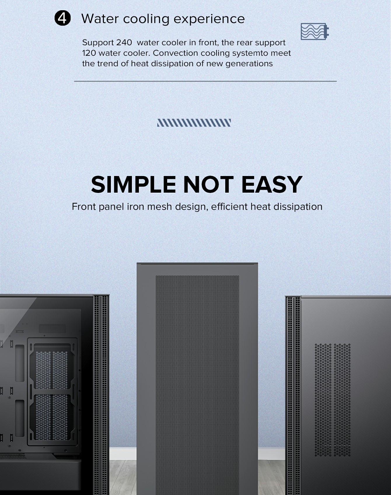 • It also accommodates top and front 360mm radiators for top-tier cooling performance.