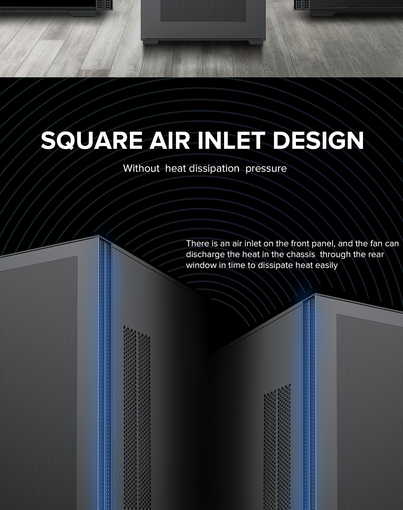 • Enhanced Airflow - Air vents on the sides of the front panel promote optimal airflow.