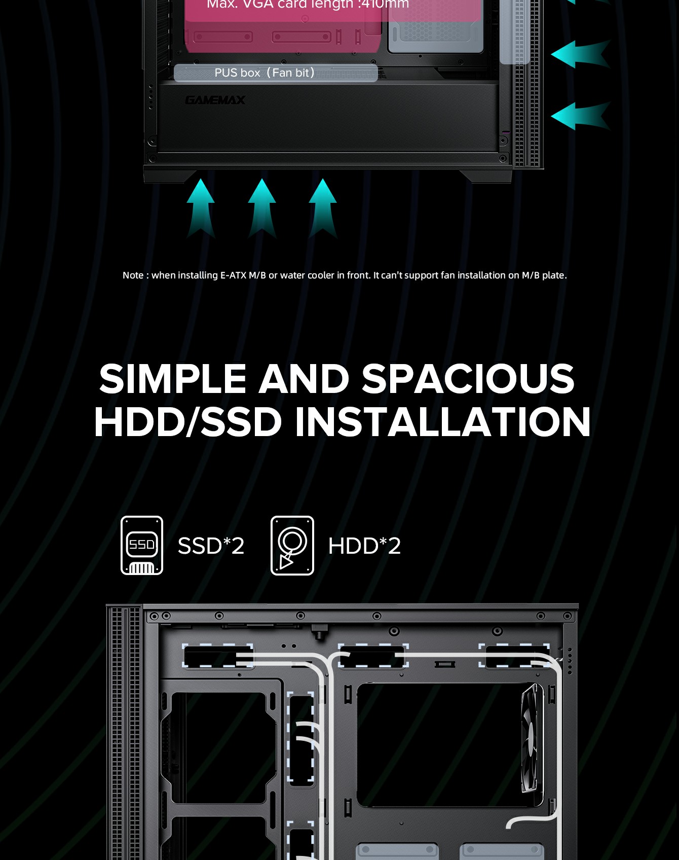 | SPS Length | Up to 265mm(front cover w/o Water Cooling) | |